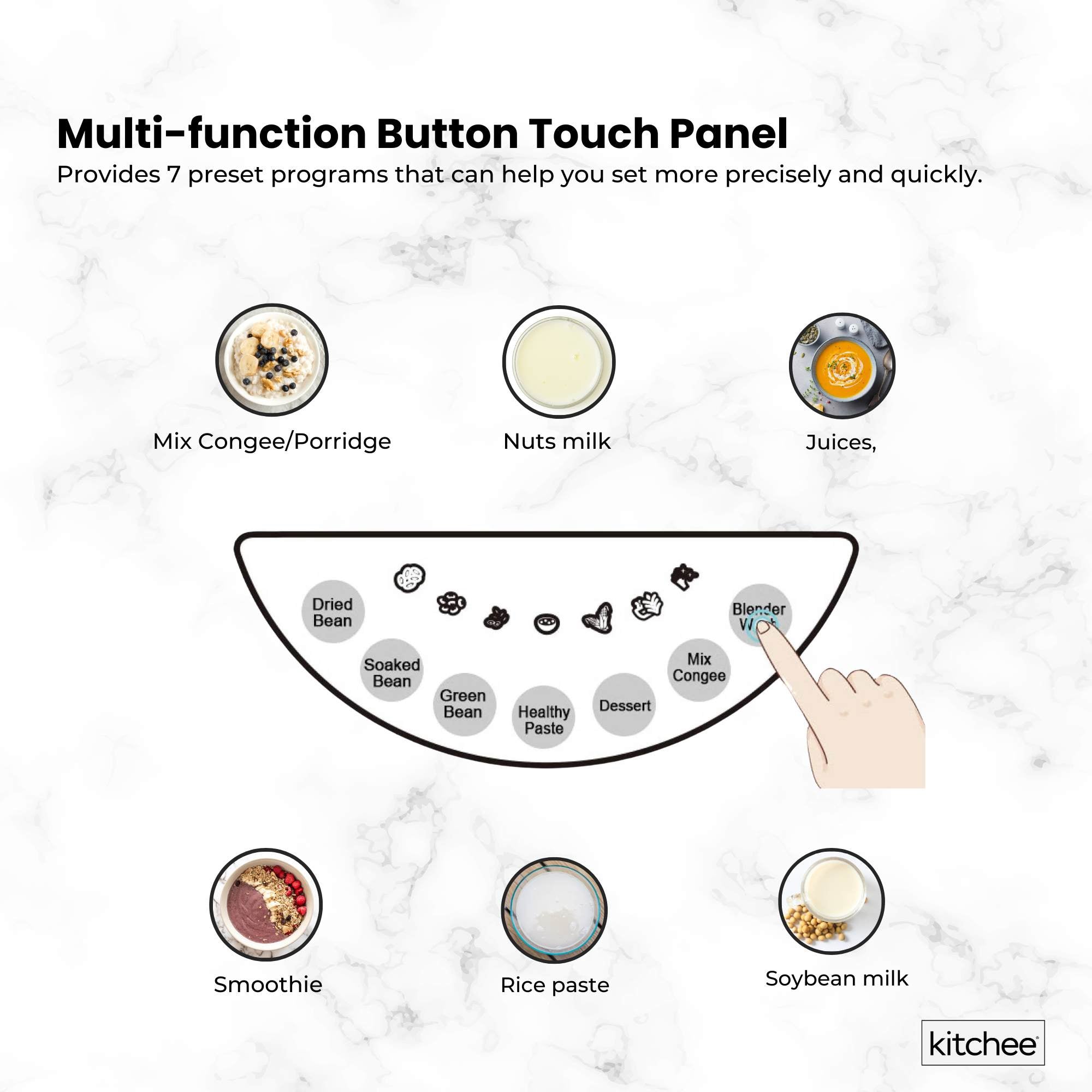 No soaking or filtering necessary for a smooth and fine taste, the Soy Milk Maker heats, blends and produces milk and other foods simply, quickly and easily all in one appliance at the press of a button.