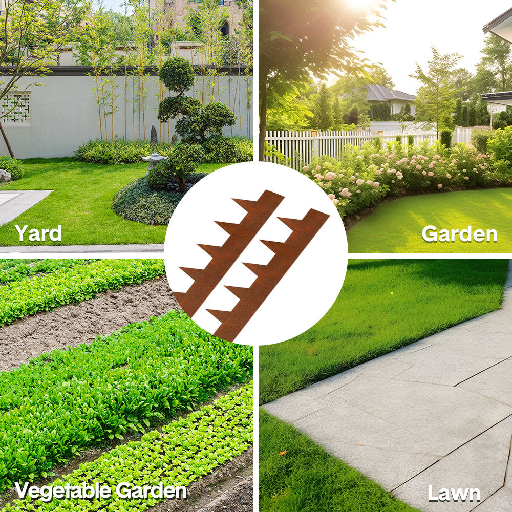 With 101.5cm long strips with spikes,our 10-Pack Mental Landscape Lawn Edging add charm and functional features to your garden landscaping. Not only can it divide the yard from pathways,but also it creates clean lines and offer rustic natural look. Ideal for outdoor gardens, courtyards, lawn and various landscape.