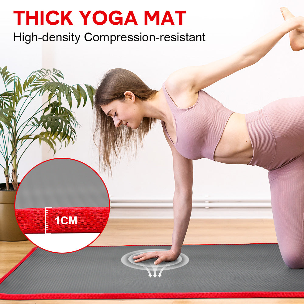 This professional-grade thick 10mm yoga mat provides the perfect balance of comfort, durability, and support for your daily fitness workouts. Suitable for various exercises including Pilates, stretching, sit-up, plank, push-up, Abs training and more, it cushions your joints, protects your body, and helps you stay balanced and securely through every move.