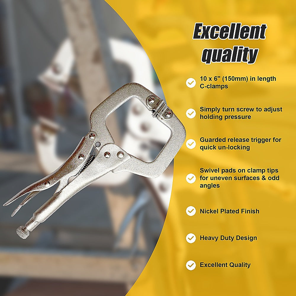 10pc Heavy Duty Steel C-Clamps 6" Mig Welding Locking Plier Vice Grip