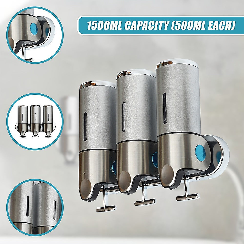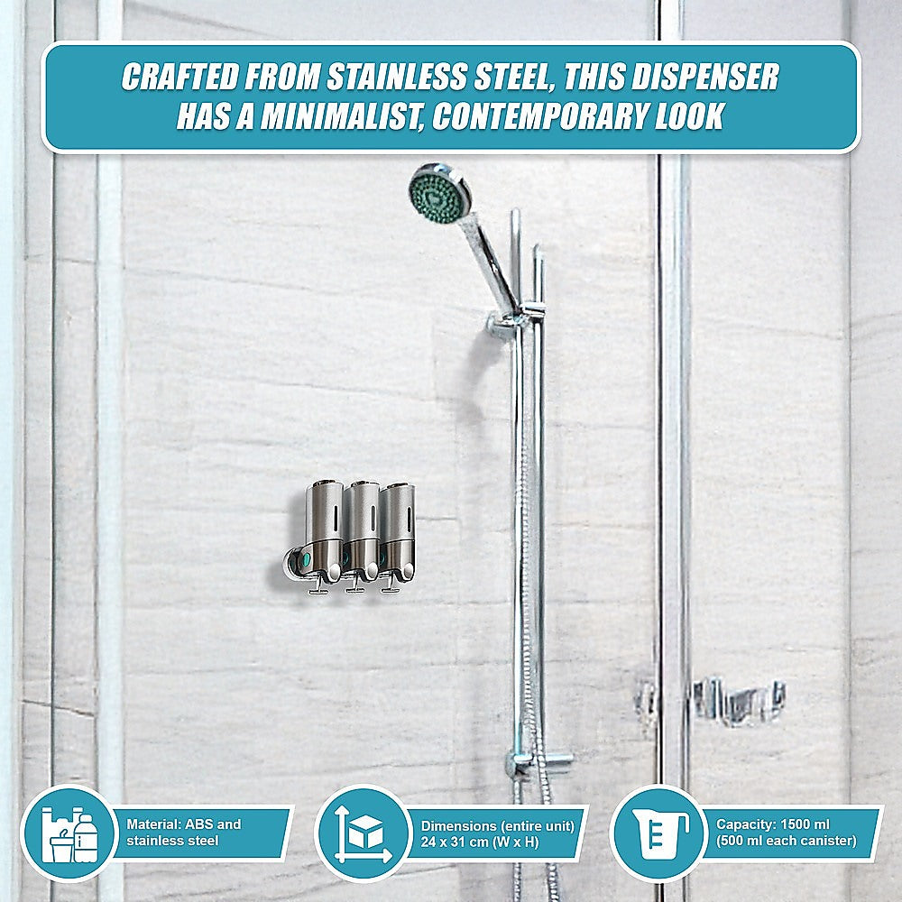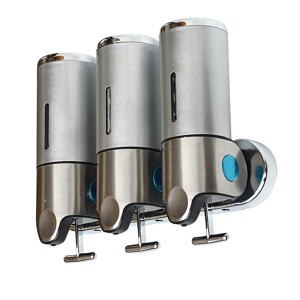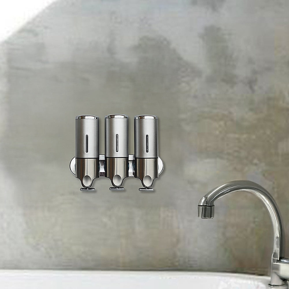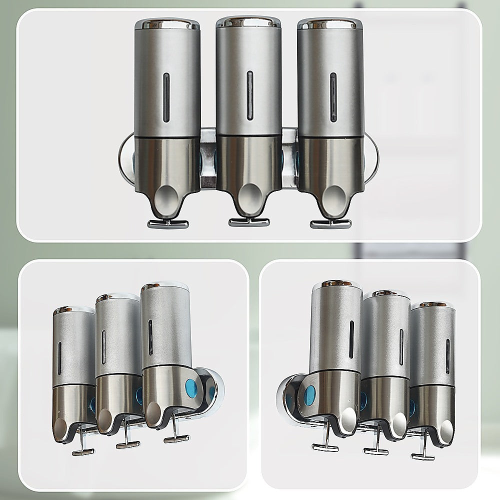 With its sleek, ergonomic design, this shower soap dispenser looks great in your shower. Install another one near your sink and keep your benchtops free from clutter. With three separate canisters attached to a single bar, the dispenser can store three different kinds of soaps, shampoos, lotions, or gels.