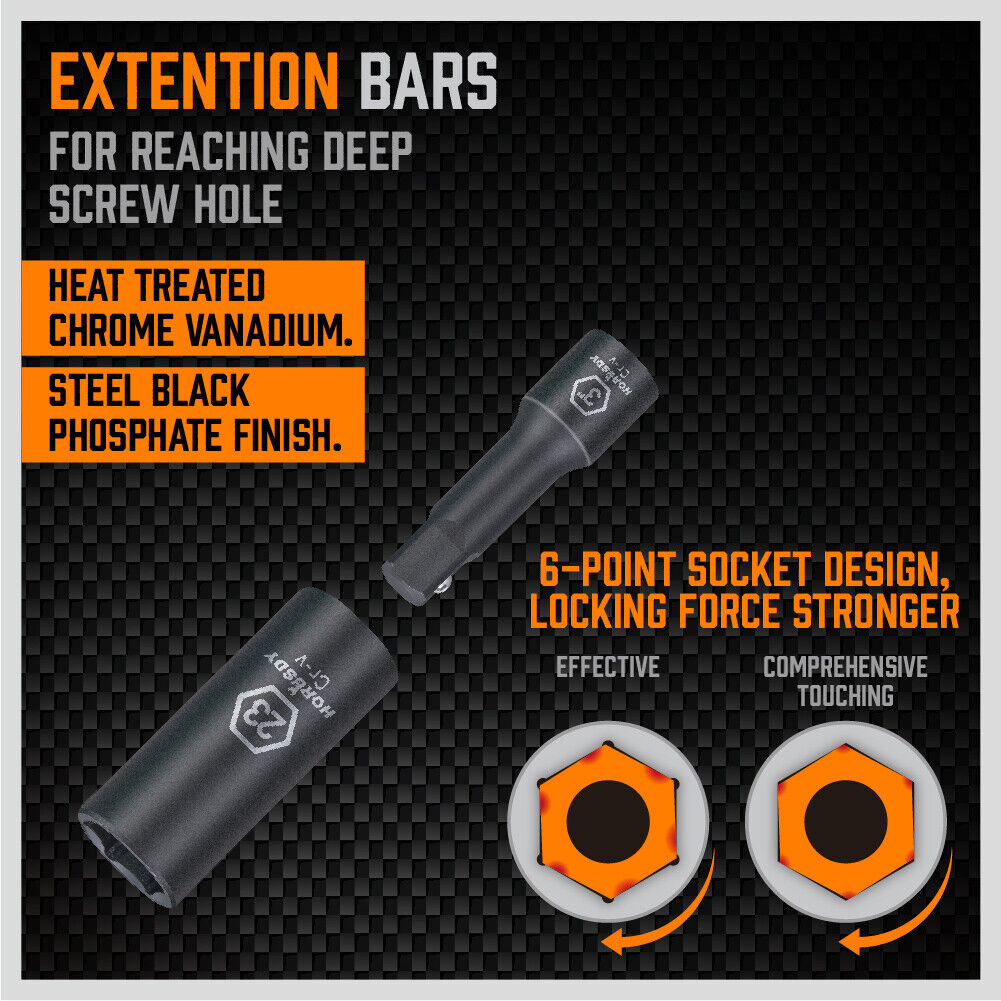 18Pc Deep Impact Socket Set Imperial / SAE Extension Flexible Adaptor 1/2" Drive