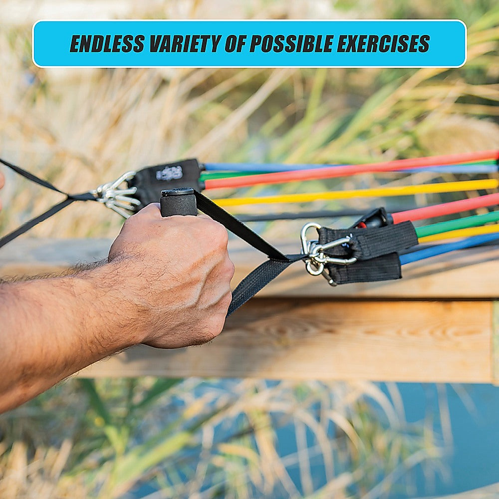 The only limit is your imagination with the 19-Piece Resistance Exercise Bands Set. Order yours today.