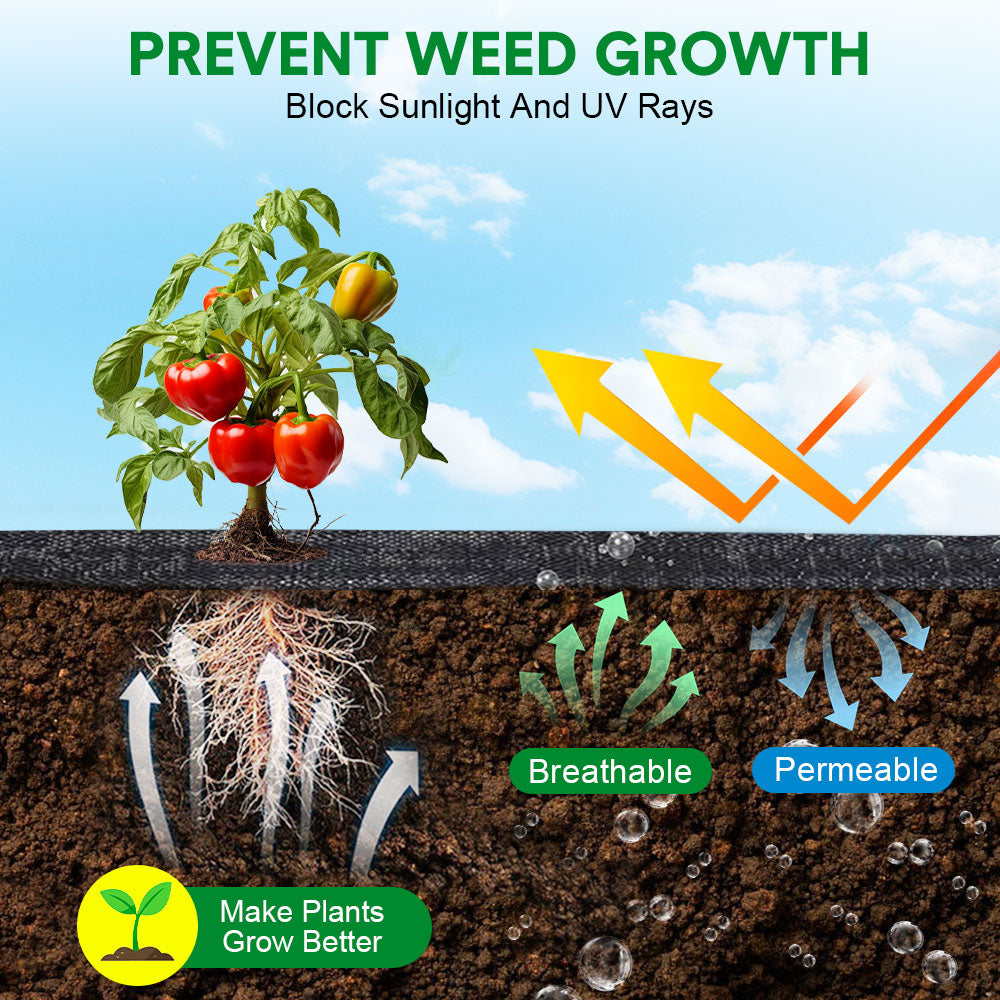 This 1m×100m heavy-duty weed barrier fabric effectively blocks sunlight to stop weeds from growing, while keeping the soil moist, breathable, and nutrient-rich for healthier plants. Ideal for home gardens, greenhouses, orchards, and landscaping tasks, it offers an easy and eco-friendly way to reduce weeding time and promote natural growth.