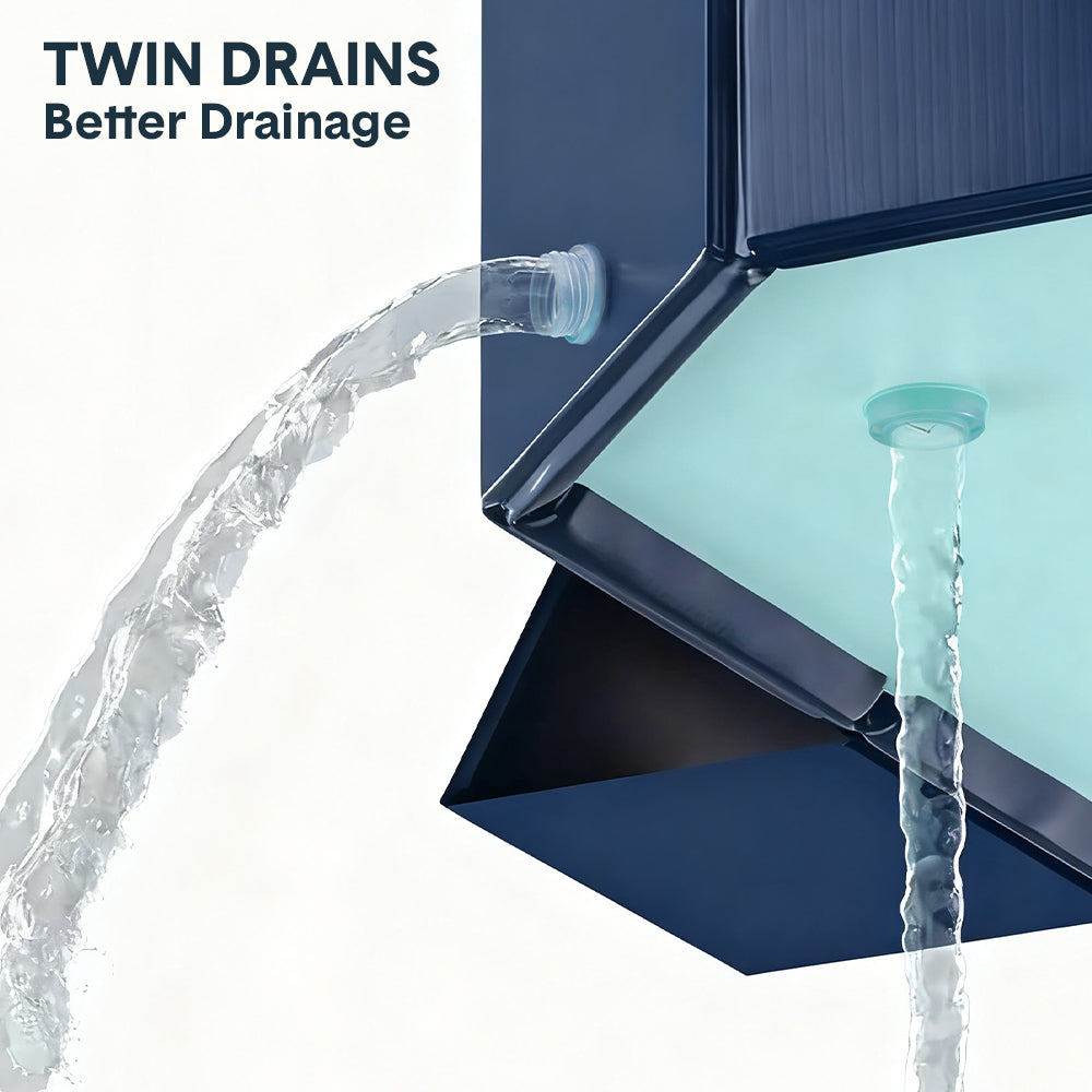 Built with durable 4-layer composite structure, this folding pool stands strong and steady with its triangle support frame. Its spacious design provides plenty of room for everyone to enjoy, while the foldable structure ensures the pool won't take up much storage space when not in use. The dual drainage outlet makes cleanup fast and easy.