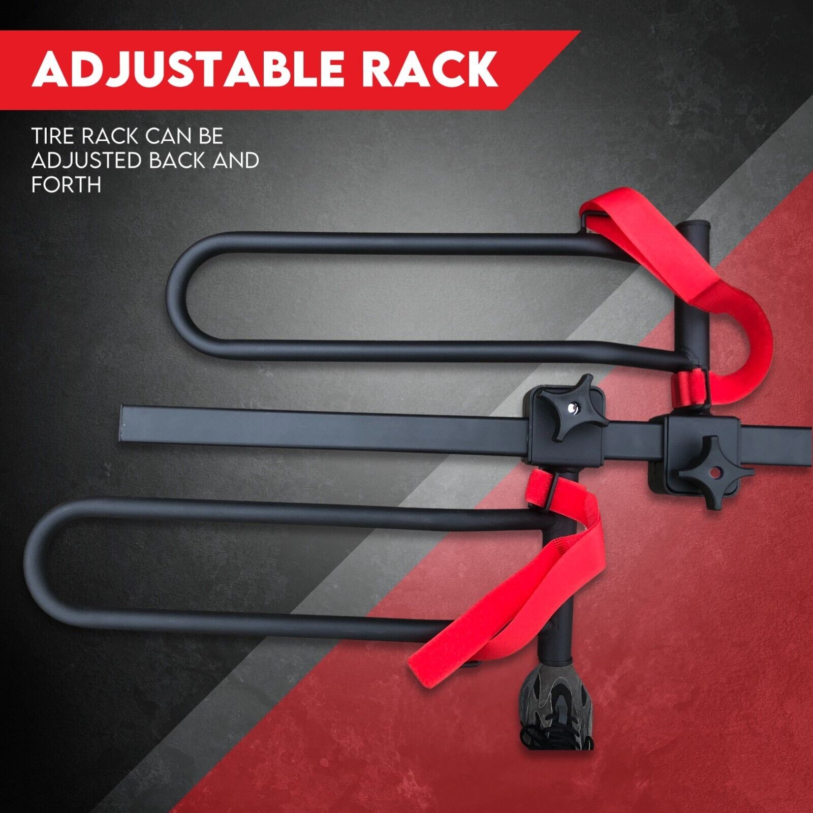 Its sturdy wide steel tray fits most narrow and fat tires. Each end can be adjusted to adapt to different bicycle lengths. Perfect fit most standard bikes, road bikes, mountain bikes, and more.
