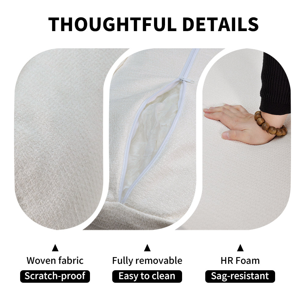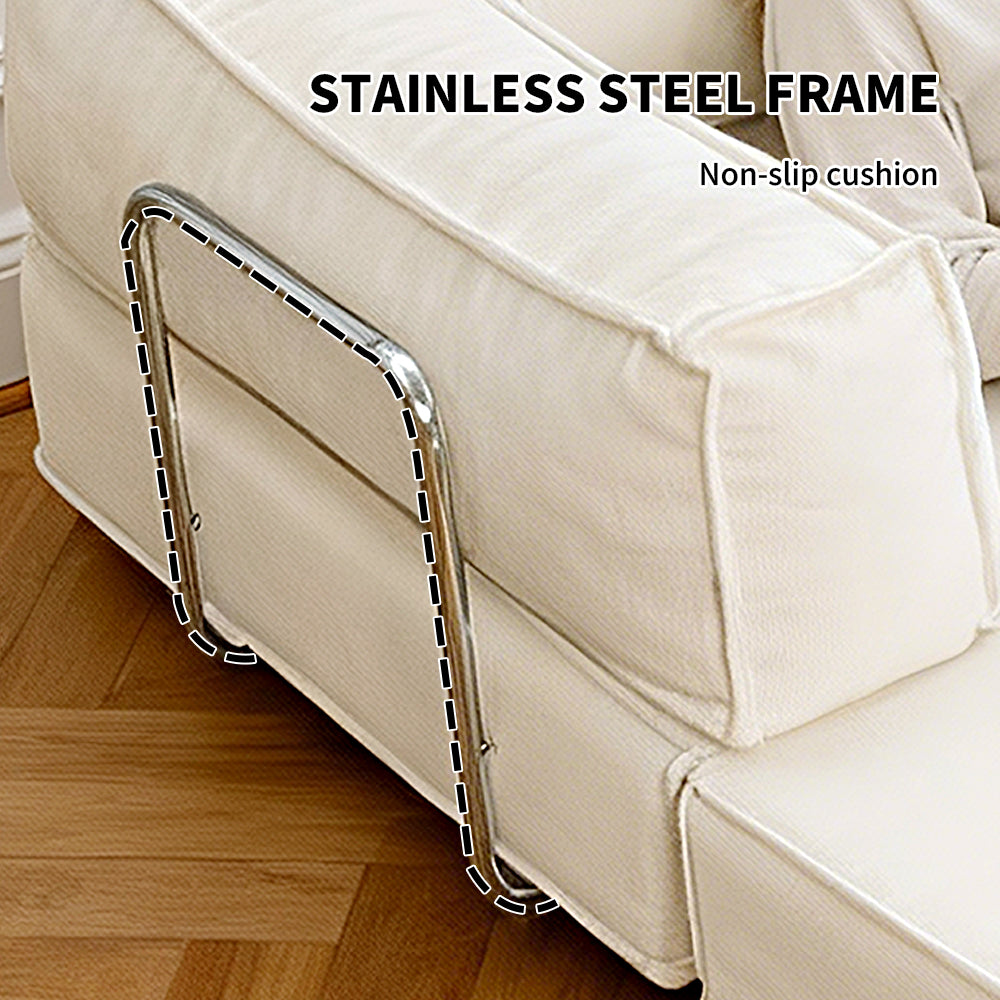The sofa is filled with 65D high-density sponge, providing long-lasting support and comfort while the plush back cushions delivers full and wrapped support. Cover cloth can be easily removed for cleaning. With a durable metal frame, the seat cushions stay securely in place without shifting. This set comes ready to use with simple setup.