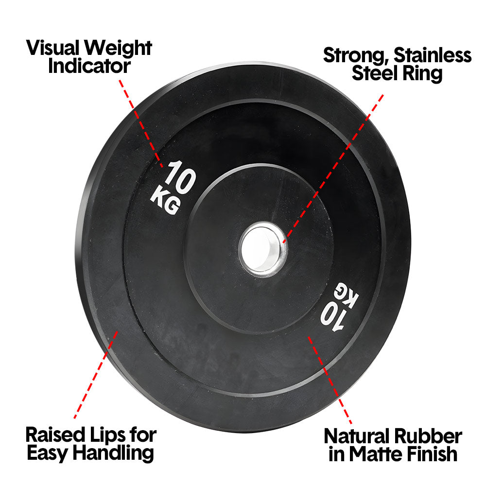 Our 10kg Olympic weight plates set provide great compatibility, durability, and safety for a wide range of workouts. Made from quality rubber, the shock-absorbing bumper plates helps protect both your equipment and flooring from impact damage. Their solid construction ensures long term use, making it an ideal choice for home fitness, schools, and gyms.