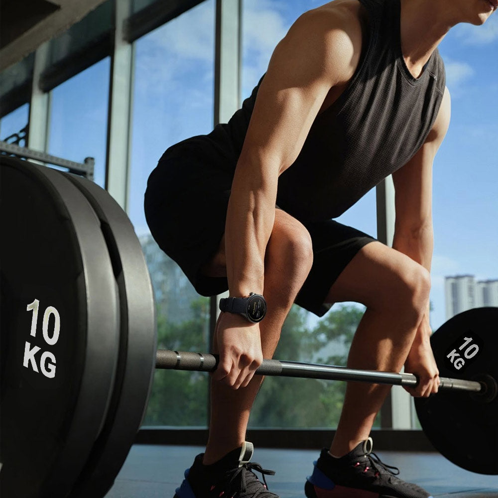 Each plate features a stainless steel insert that guarantees a secure and smooth fit onto Olympic barbell. The 51mm bore diameter ensures universal compatibility, while the rubber resists chipping, rust, and wear over time. Clear weight markings provide easy identification, and the ergonomic edge design makes loading safe and effortless.