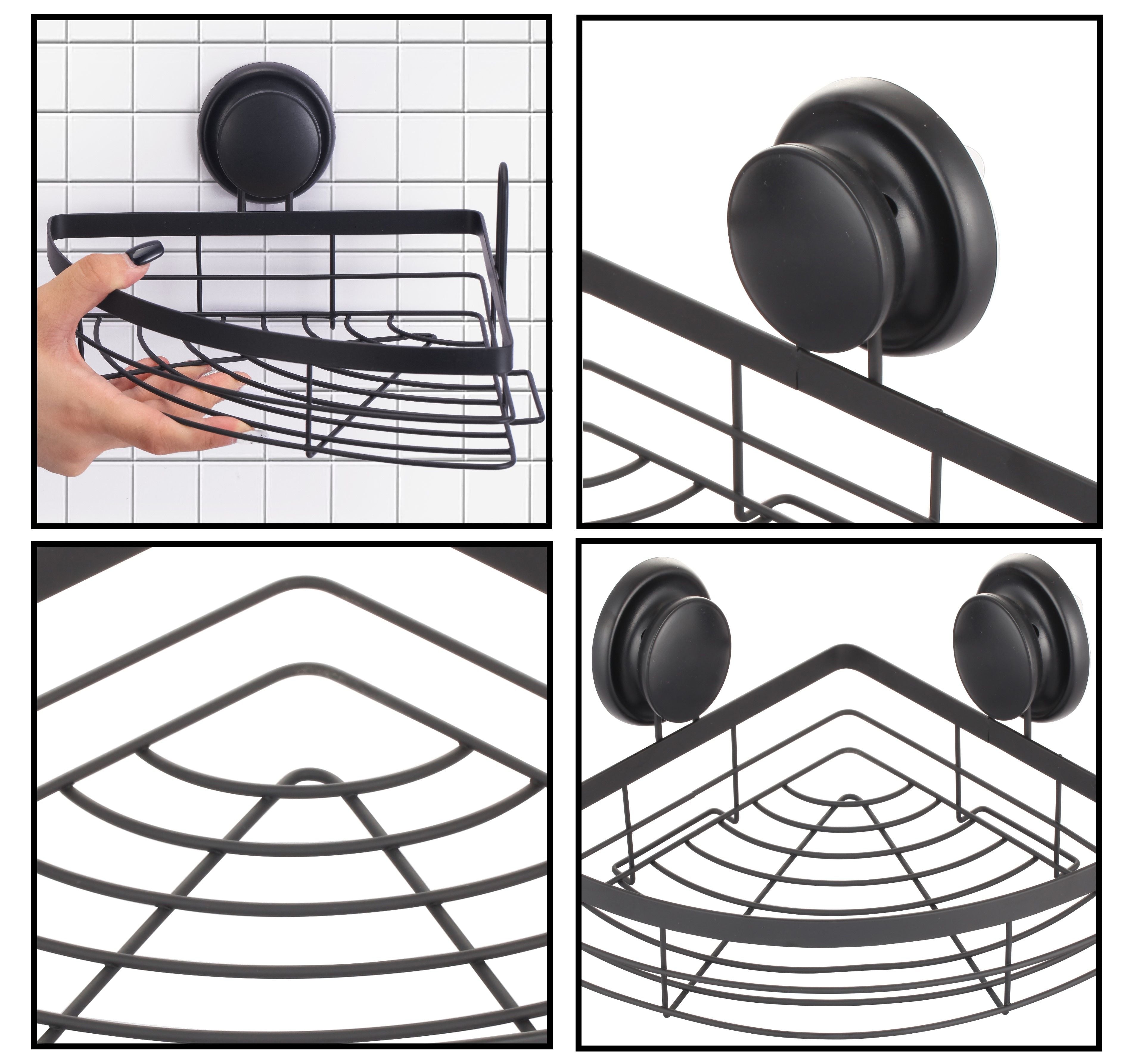 2 Pack Round Corner Shower Caddy Shelf Basket Rack with Premium Vacuum Suction Cup No-Drilling for Bathroom and Kitchen