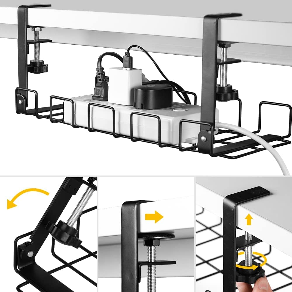 2 pack Under Desk Cable Management Tray, Black