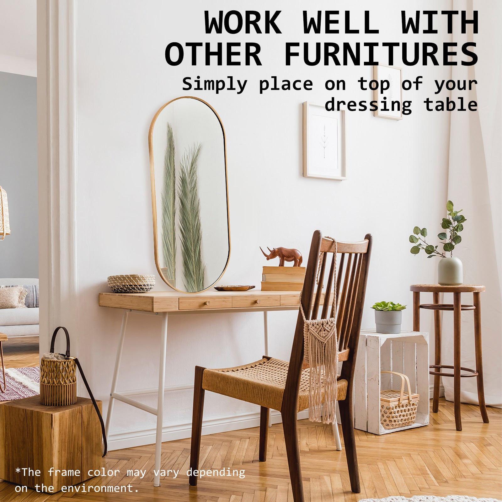 The oval mirror is stylish and neat in design comes with a 2.8cm thickness slender aluminium frame that is sure to capture the attention of all. Plus, its curved lines all rounds will become a central focal point in any room which makes spaces feel more inviting and relaxing.