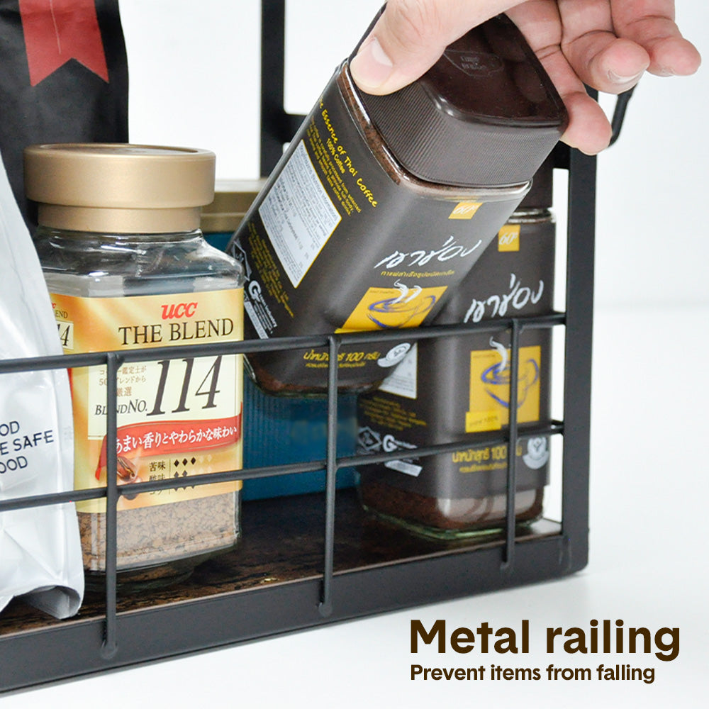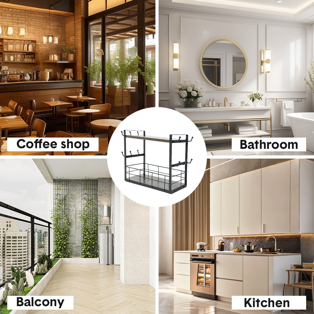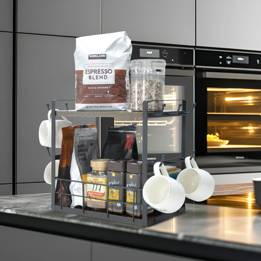 Elevate your kitchen or coffee bar with this stylish 2 Tier Metal Coffee Cup Holder Storage Rack, designed to keeps your coffee supplies and kitchen essentials neatly organized. Its thoughtful design make it a perfect addition to any setting, enhancing both functionality and visual appeal.