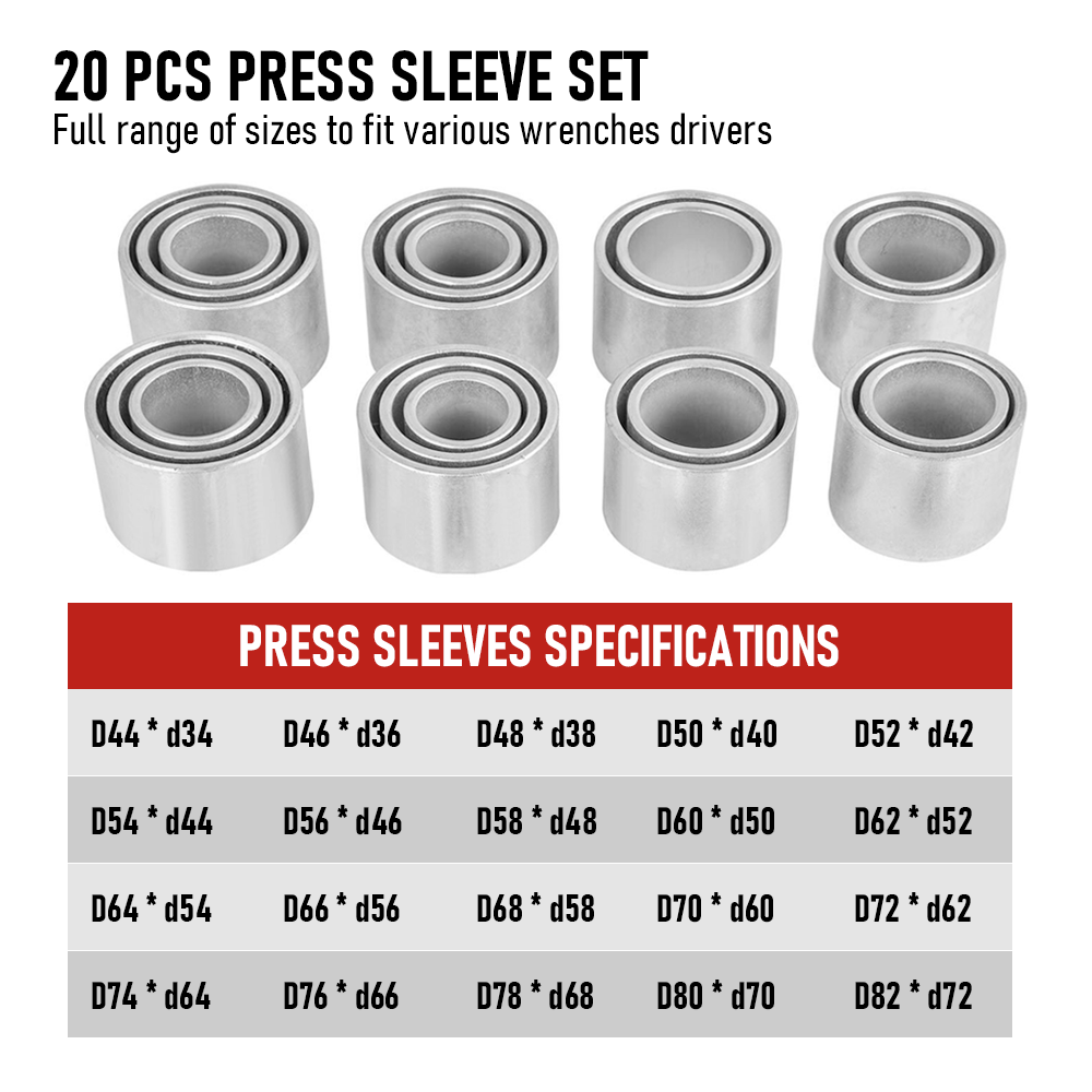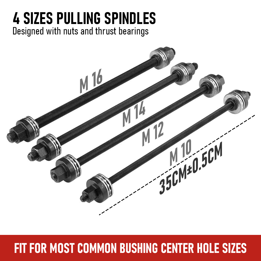 The Professional Pull Press Sleeve Kit is a versatile 30-piece set designed to remove and install bushes, bearings, and seals effortlessly, making it a must-have tool for both DIY enthusiasts and professional mechanics. This comprehensive kit provides universal compatibility with most cars, light commercial vehicles (LCVs), and heavy goods vehicles (HGVs), allowing for precision work without the risk of damaging bearing or suspension housings. Ideal for domestic and imported vehicles, this kit ensures reliable and efficient performance for various automotive maintenance tasks.