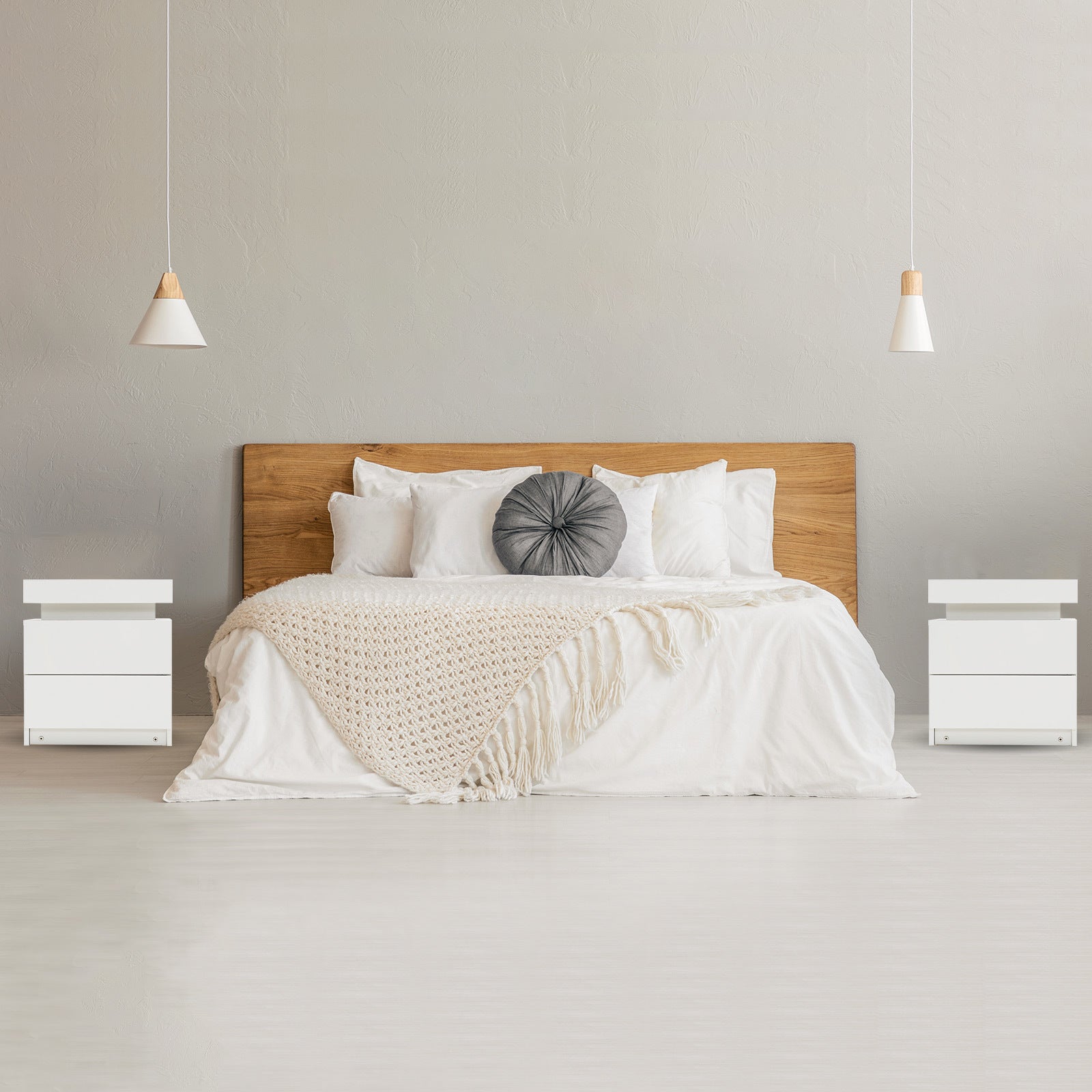La Bella 2 Set Bedside Table 2 Drawers RGB LED Bedroom Cabinet Nightstand Gloss AURORA - White
