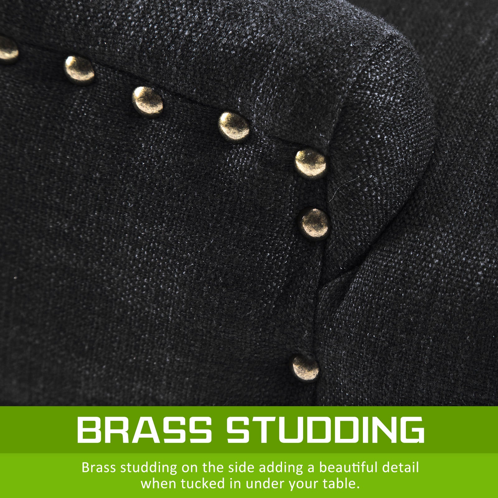 Upholstery Fabric: High-quality linen fabric with brass studs