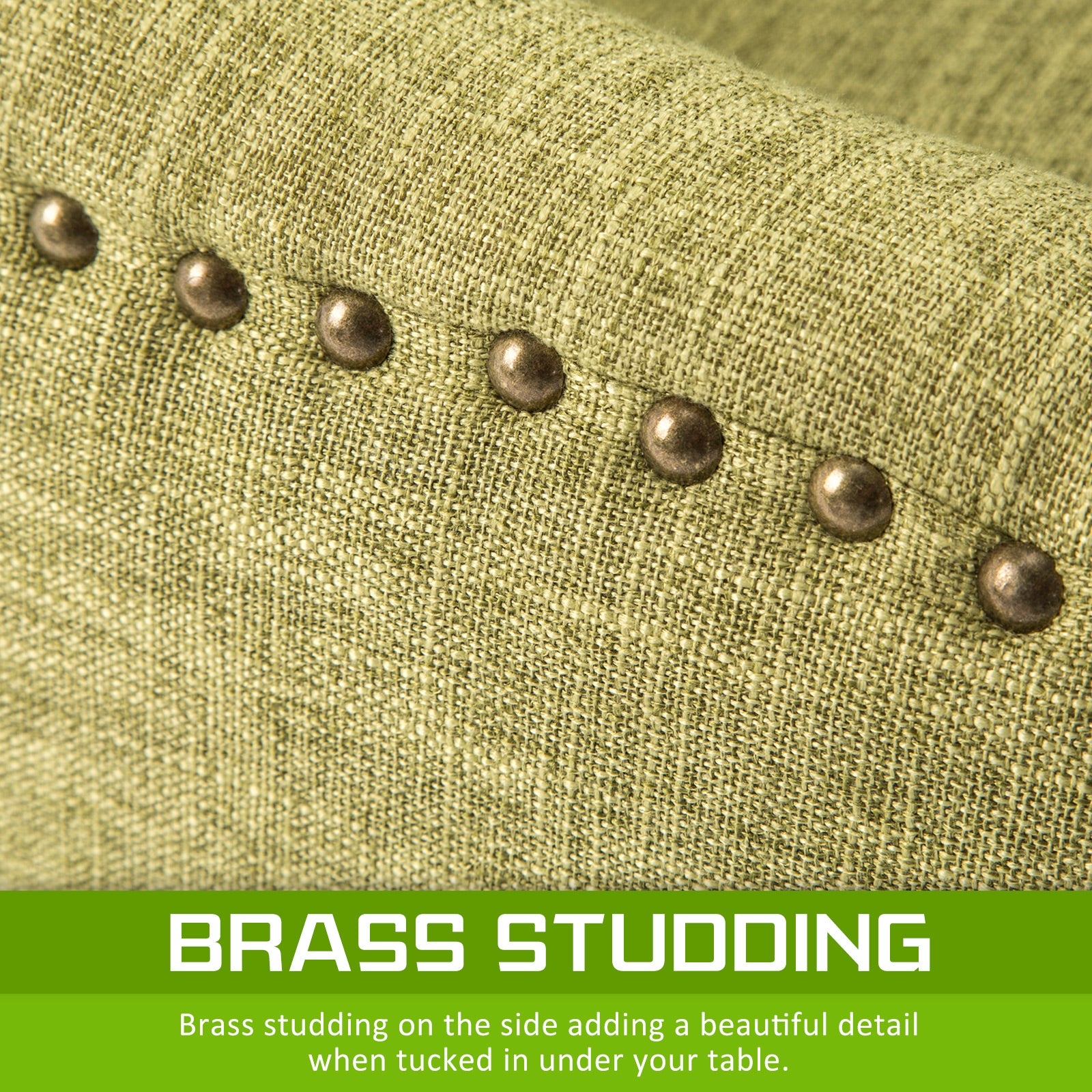 Upholstery Fabric: High-quality linen fabric with brass studs