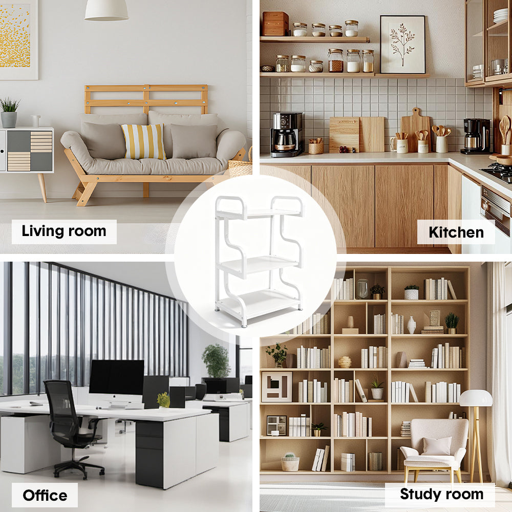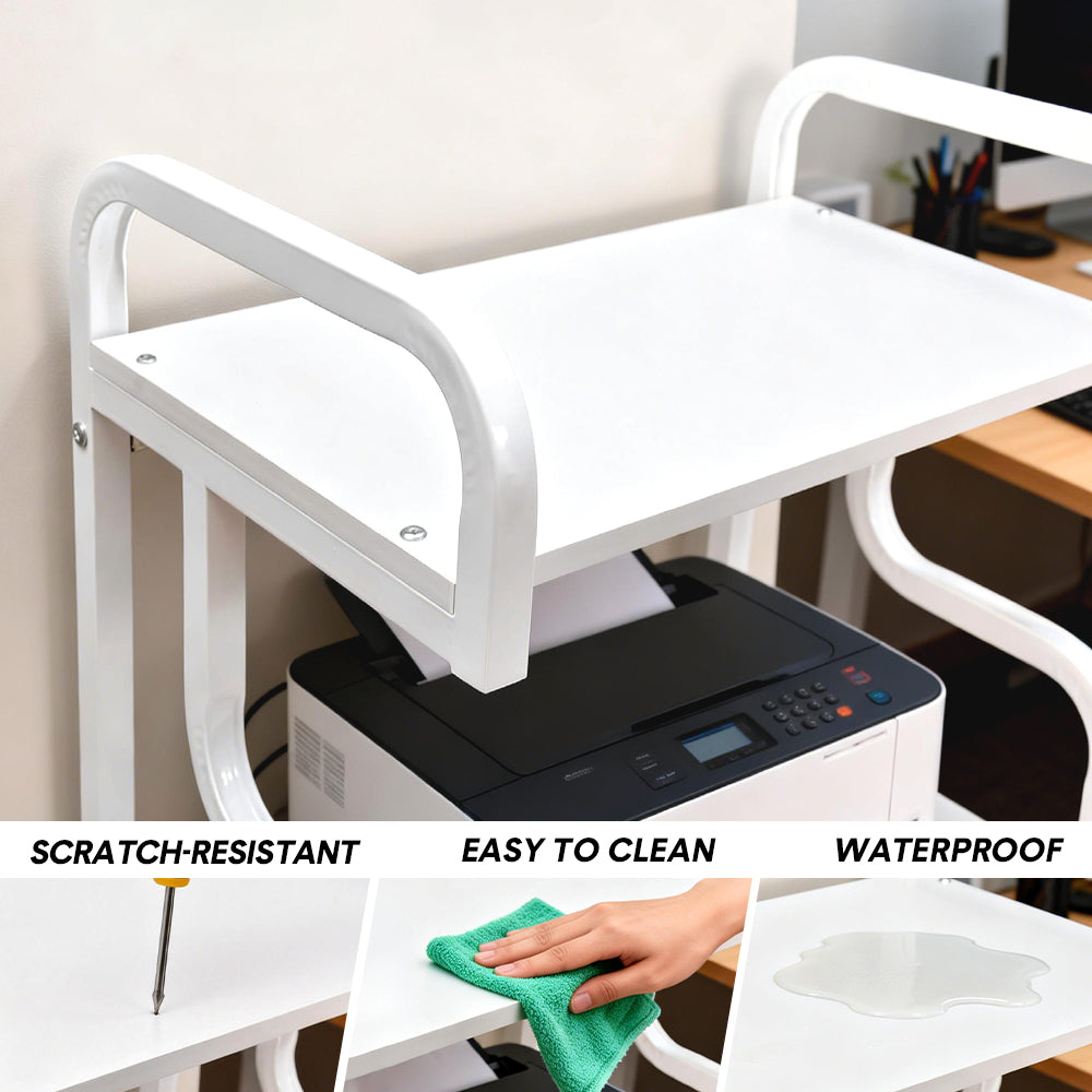 This compact 3-tier printer stand keeps printers, files, and daily essentials neatly organized while freeing up valuable desktop space. Each tier supports up to 15 kg, providing reliable and sturdy support for office equipment. Suitable for home offices, small apartments, and multifunctional rooms, it offers easy access and a clean stylish appearance look.