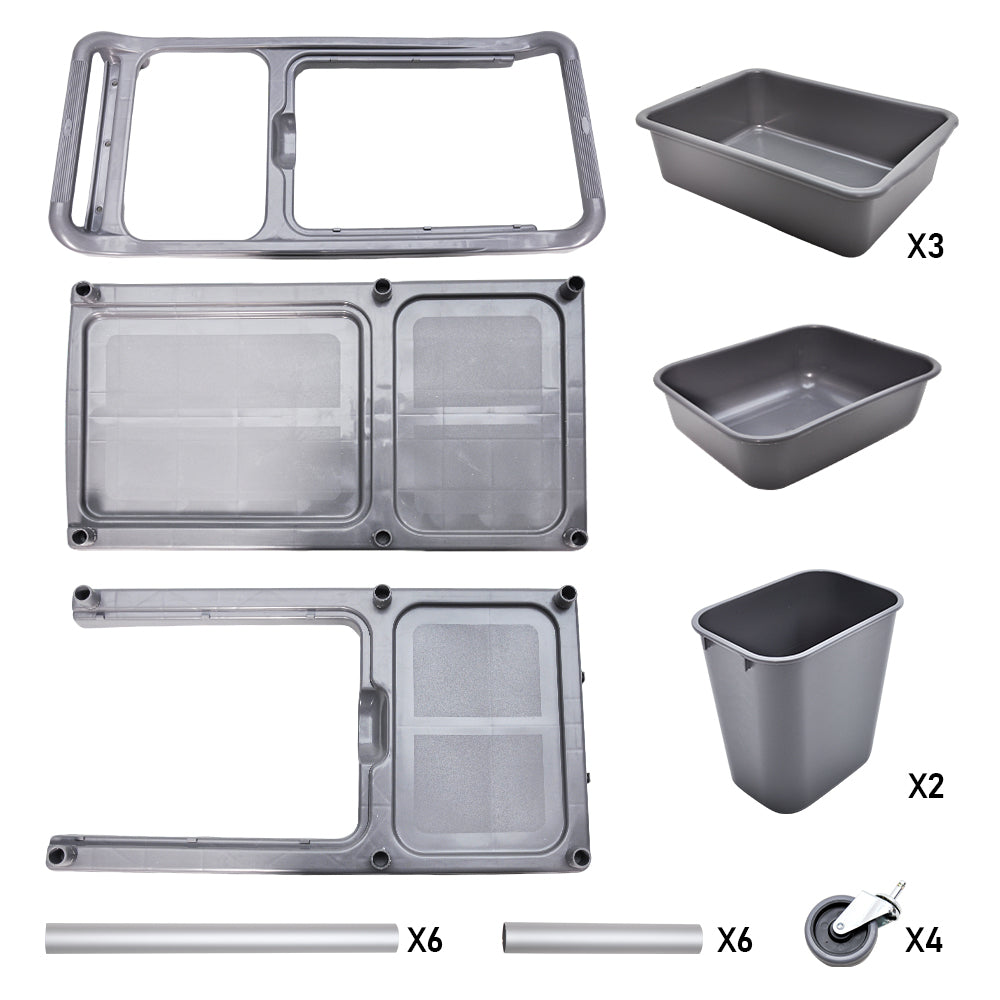 Specially designed for restaurants, cafeterias, and catering services, this large kitchen utility cart streamlines the collection and sorting of dishes, cups, and cutlery. With its large capacity and multiple containers, it delivers efficiency and convenience, reduces staff workload, saving valuable time and labour.