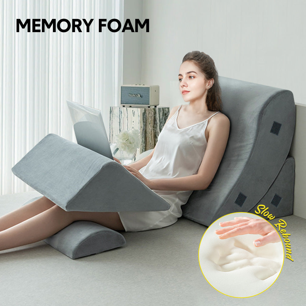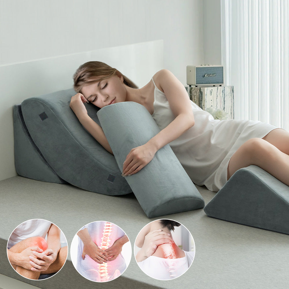 Discover the ultimate comfort and support with our premium Memory Foam Bed Wedge Pillow Set. This ergonomic pillow set enhances relaxation, aids in recovery, and improves overall well-being. Perfect for athletes, individuals with chronic pain, or those in need of post-surgery support.
