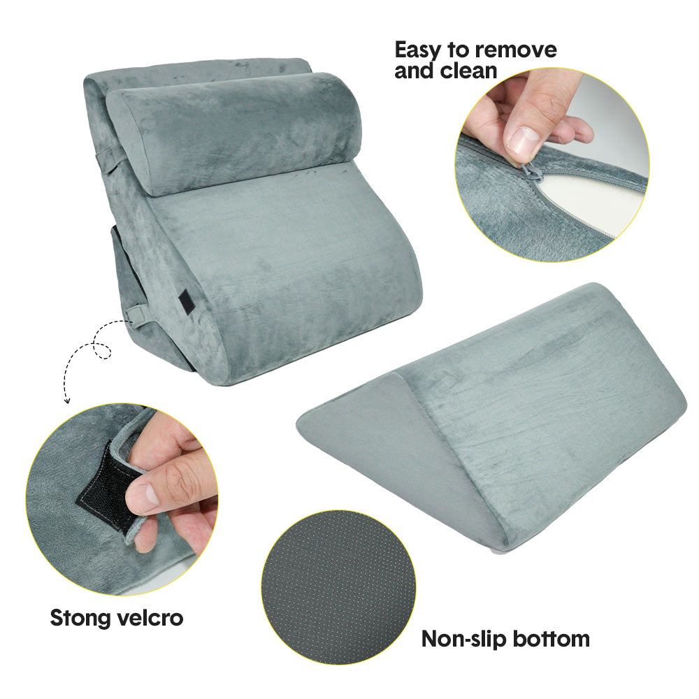 This Wedge Pillow Set conforms to the body's natural curves, providing excellent support for the neck, back, and legs while promoting proper posture and alignment. Made from high-density memory foam, it offers lasting comfort without deforming. Each pillow comes with a machine-washable velvet cover, making it easy to maintain.