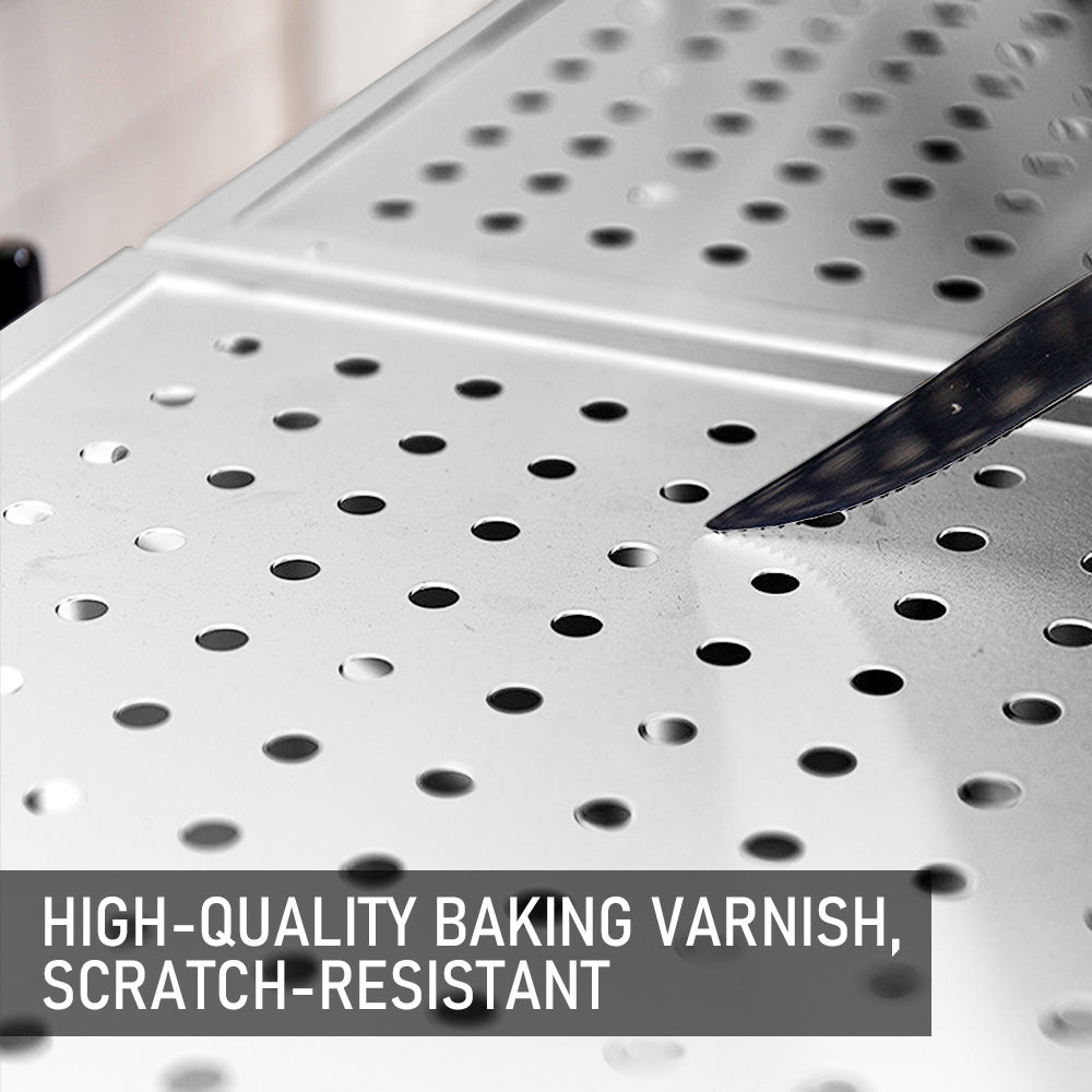 Crafted from high-quality steel, the 5 Tier Storage Shelf Rack is a durable and versatile organizer. Swivel casters allows for effortless mobility while lockable feature helps to keep it in place for stability. Ideal for kitchens, garages, or studios, it offers ample space for various items and ensures quick assembly and disassembly.