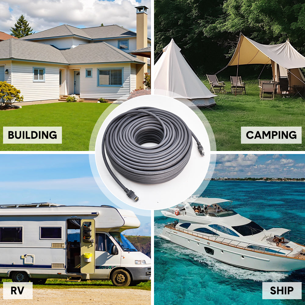 Made from reinforced, high-quality PVC, this cable is waterproof, weather-resistant, and fireproof. Ideal for both indoors and outdoors. Featuring 100% copper wiring, it supports bandwidths up to 1200 Mbps. Plug-and-play design ensures effortless installation, providing stable, reliable, and high-performance connectivity.