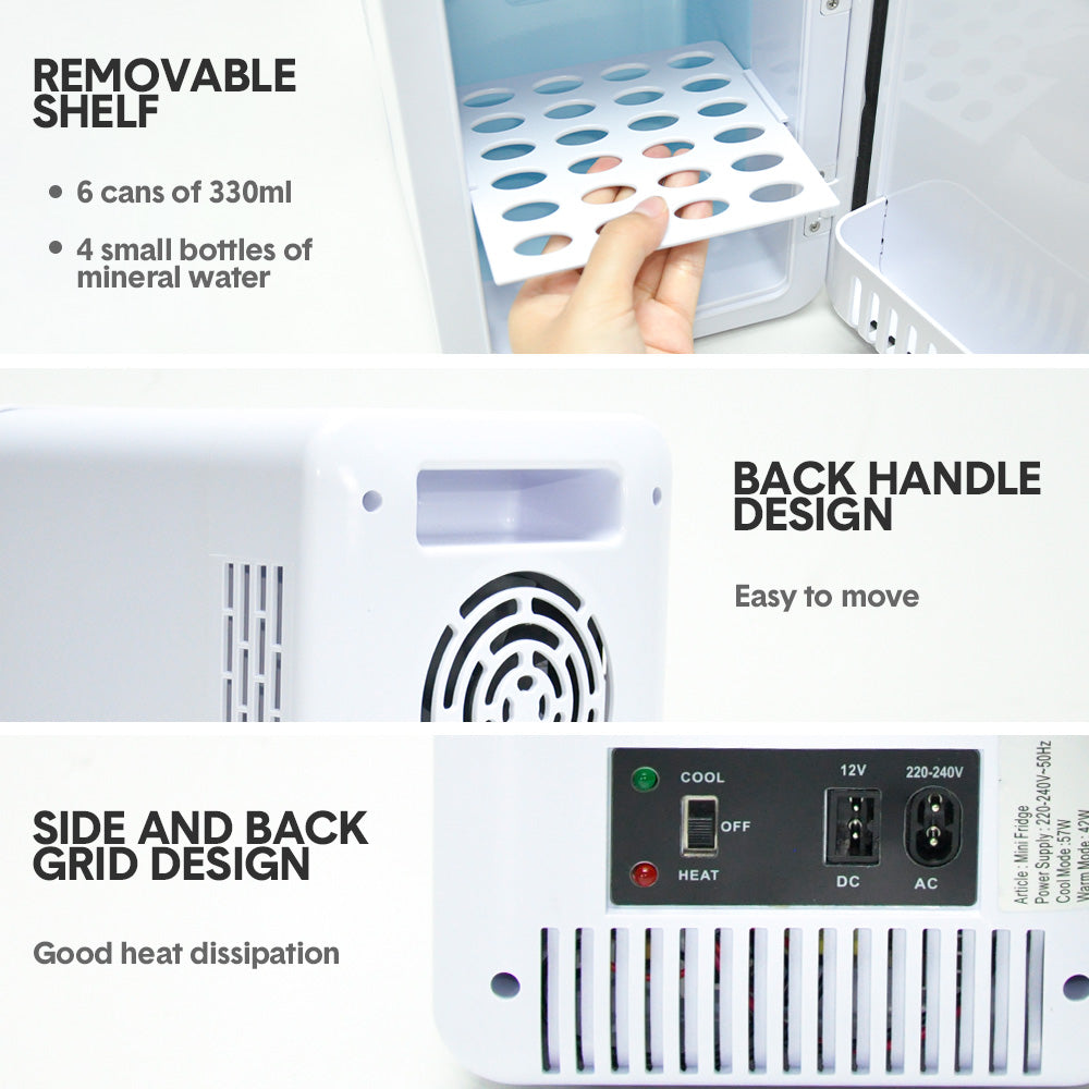 This 4L Mini Fridge provides a flexible solution for keeping your items with cooling and heating functions. The fridge includes two plug options, making it suitable for both home and car use. With its compact size, it fits seamlessly into small spaces. Perfect for storing beverages, snacks, cosmetics, and more.