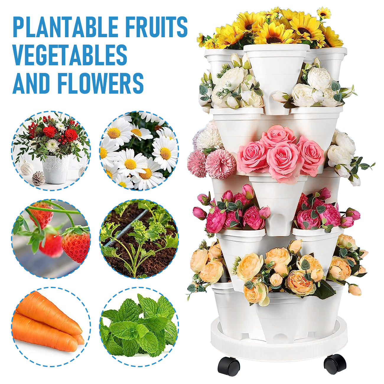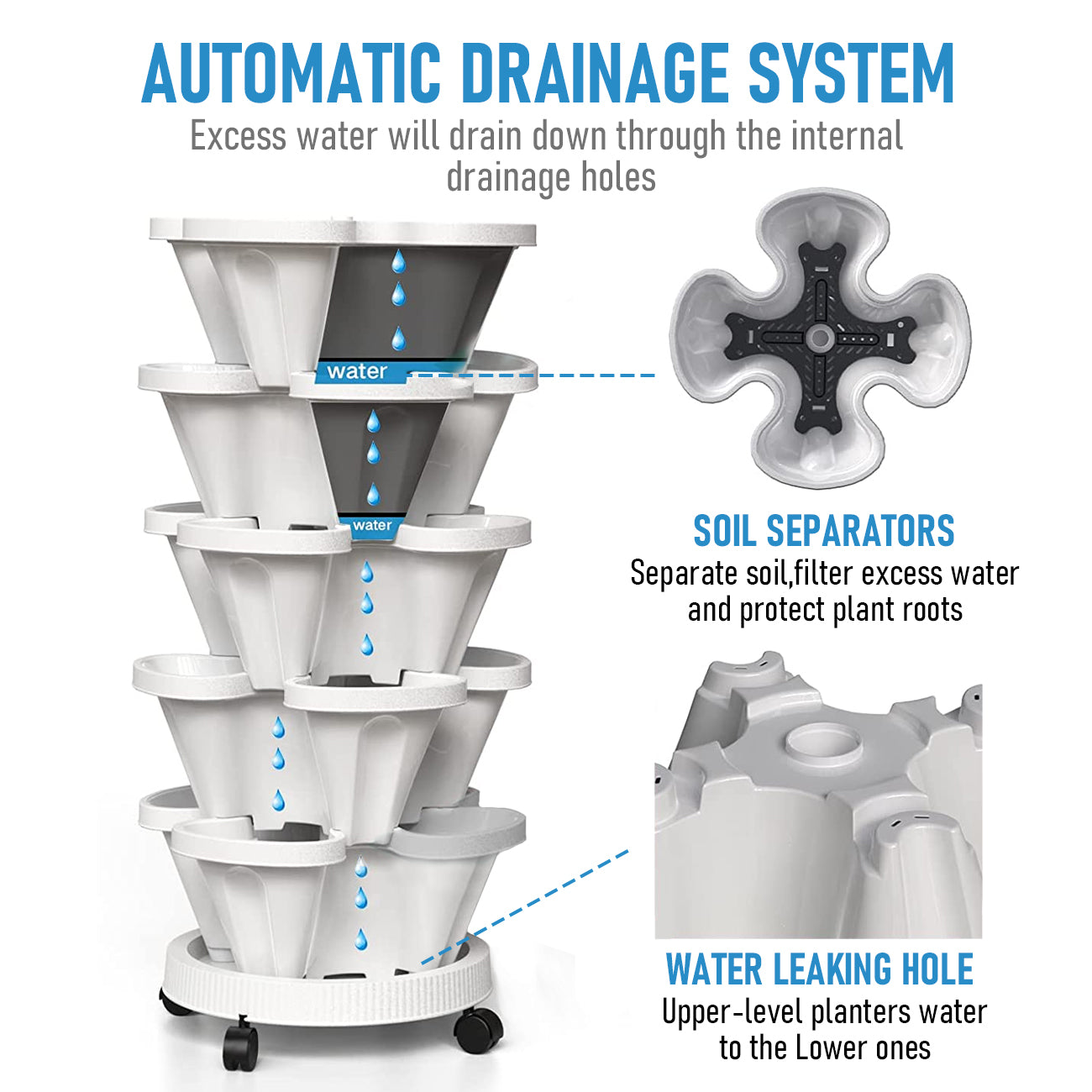 With easy setup and wheels for mobility, the 5 Tier Vertical Garden Stackable Planters offer a versatile and space-saving gardening solution. Despite its compact size, it yields a high harvest, ensuring fresh produce year-round. Aesthetic design enhances spaces utilization while providing functionality.
