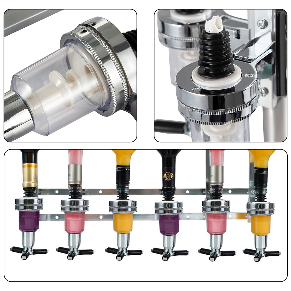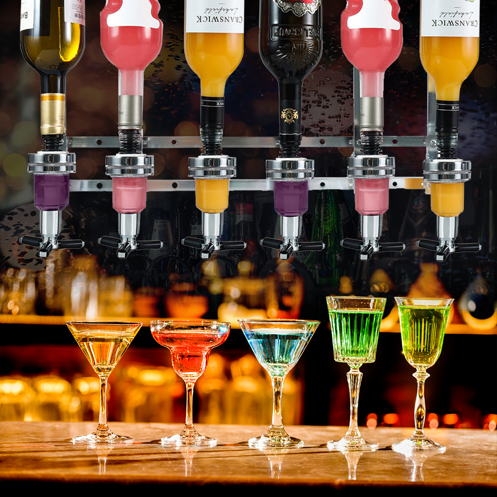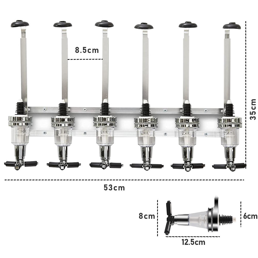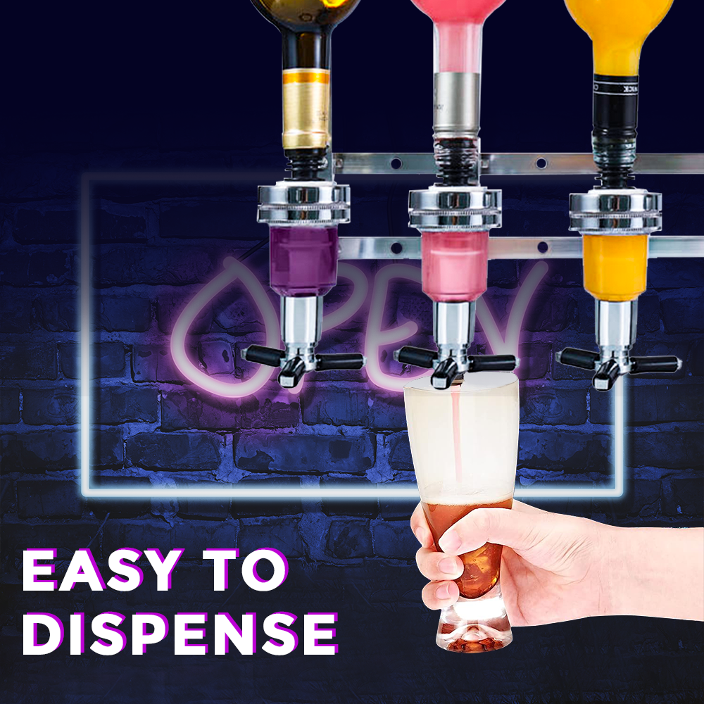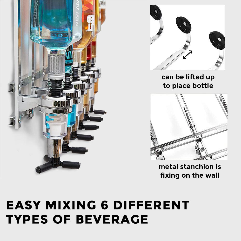 This Wall Mount 6 Bottle Liquor Dispense provides a sleek and efficient solution for organizing and dispensing your favorite spirits and beverages, allowing you to pour multiple drinks simultaneously. Perfect for home bars, parties, restaurants, and special events.