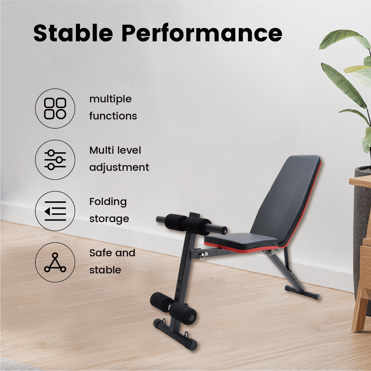 Suitable for all fitness levels, this multifunctional weight bench enhances your workout routine without the need for multiple equipment, supporting full-body training from chest presses to sit-ups. Its adjustable design lets you effectively target your arms, abs, back, and legs, making it perfect for strength building, toning, and core development.