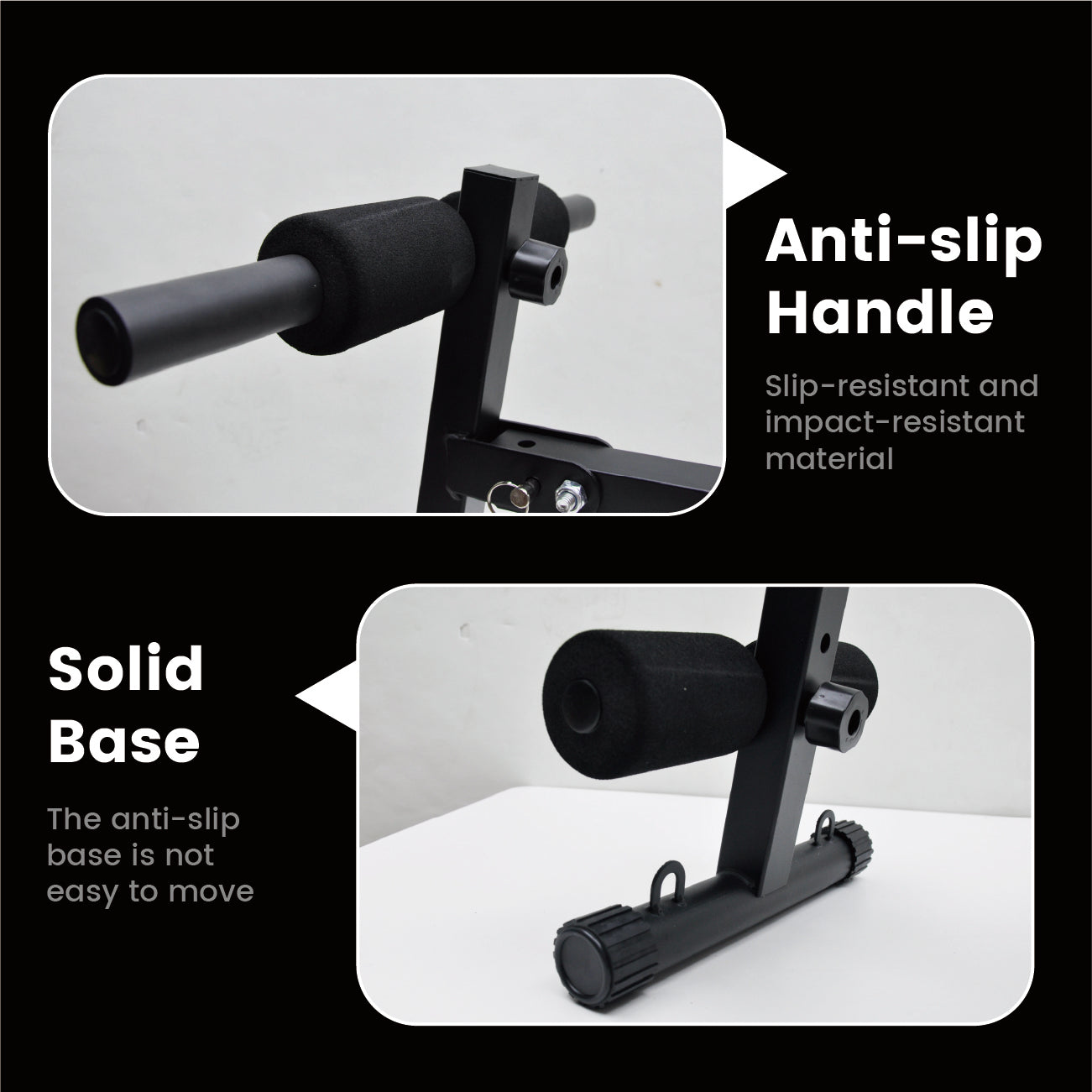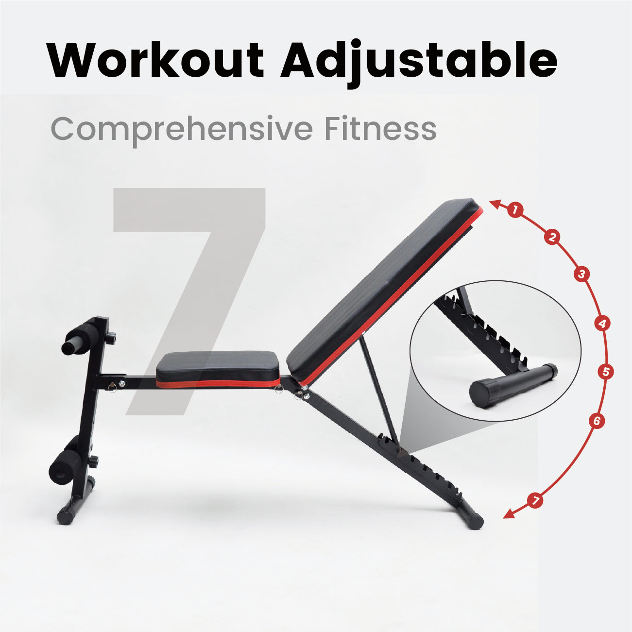 Made from high quality steel with a triangular design, this bench frame provides stability and superior weight capacity, while thick foam cushions offer comfort and reduce strain. Featuring a 7-angle adjustable backrest and 4-level foot rollers, this bench adapts to a wide range of exercises and body types. Foldable design ensures easy storage and transport.