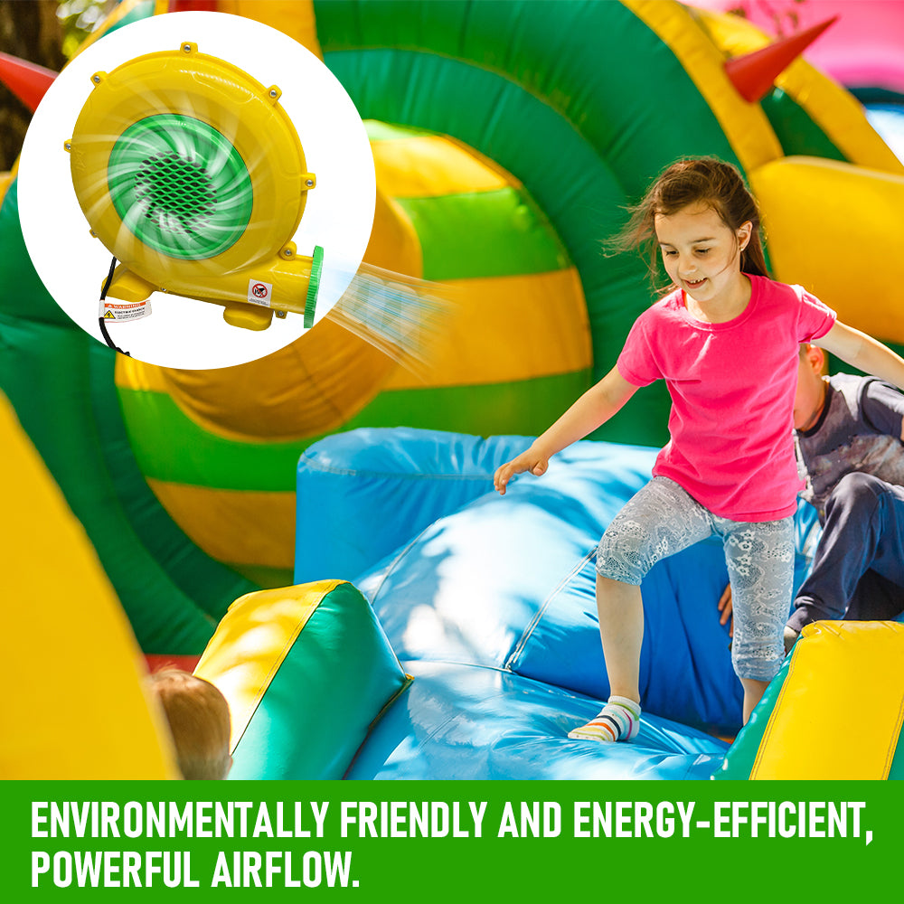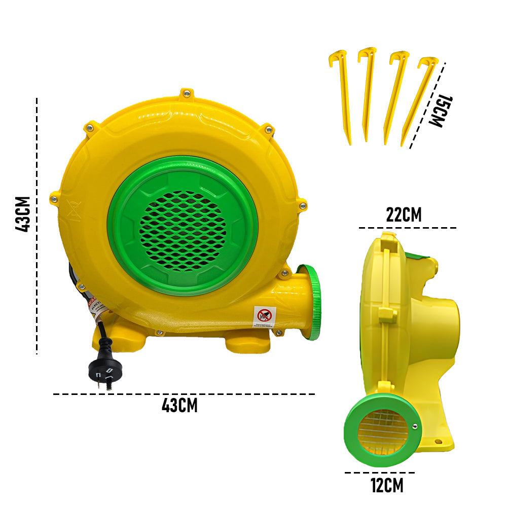 The 680W Electric Air Pump Blower is a versatile and efficient tool for inflatable castles, bounce houses, and waterslides.Its powerful 680w motor and 11.5cm air outlet ensure quick inflation. Featuring low noise, portability, a waterproof design with SAA approval, it is perfect for various outdoor inflatables.