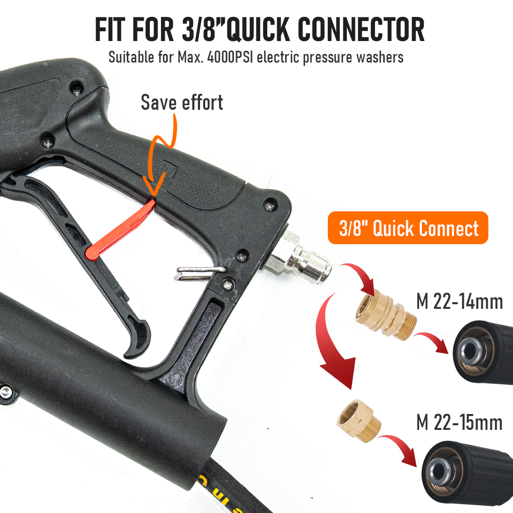 This Premium Telescoping Washer Wand is a must-have for your outdoor cleaning needs.This advanced wand offers exceptional high reach, with a maximum length of 20 ft (6 m). Crafted from lightweight aluminum alloy and durable 430 stainless steel, it ensures long-lasting performance and reliability.
