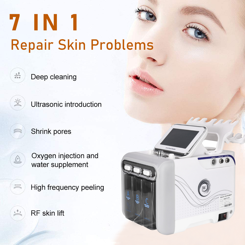 Experience the latest innovation in facial skin care with this advanced H2O2 hydrogen oxygen small bubble machine. Utilizing an H2O2 generator, it transforms purified water into hydrogen for improved skin rejuvenation and whitening results, giving you a fresh face. This multifunctional machine offers effective and direct moistening, supplying ample water molecules to the skin during the cleaning process. It is suitable for regular or sensitive skin, as well as skin with issues like whelk, comedo, and acne.