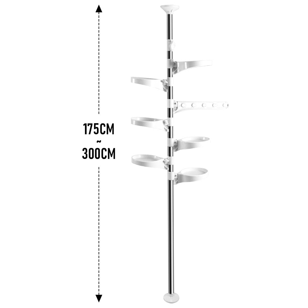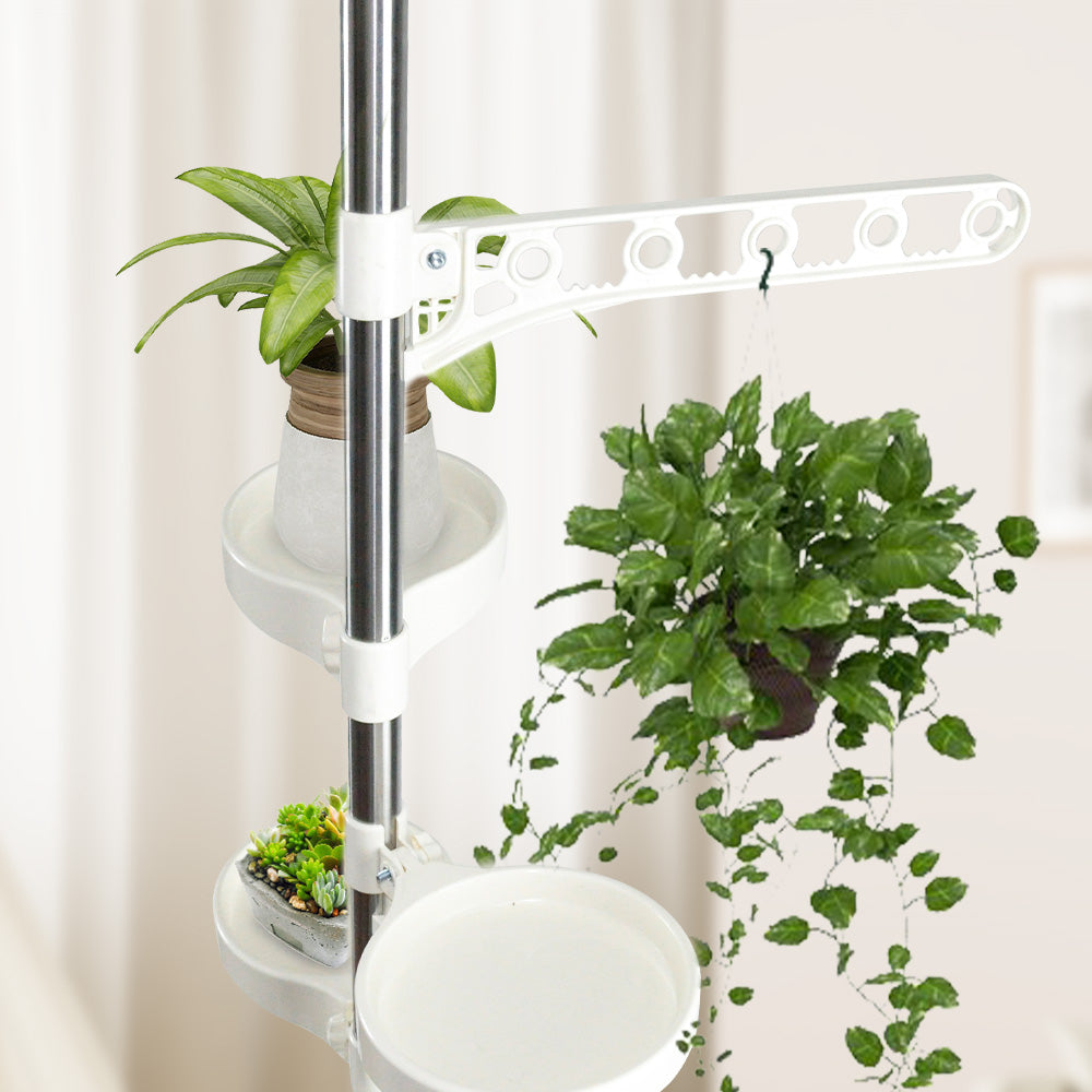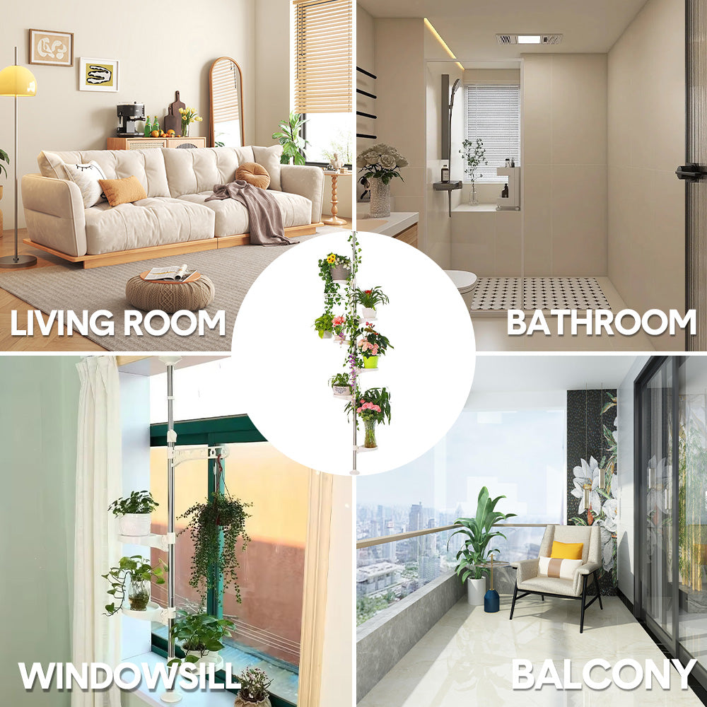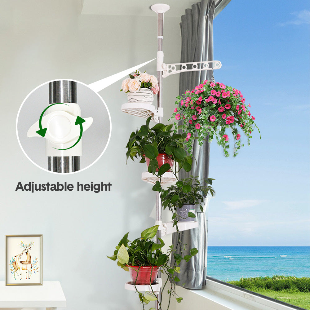 This 7-Layer Plant Stand Tension Pole is designed to elegantly display your plants and flowers. With a range from 230 to 290 cm, this versatile stand features six trays and a hanging hook, allowing for easily arranging your belove plants and flowers. Ideal for living room, balcony and patio decor.