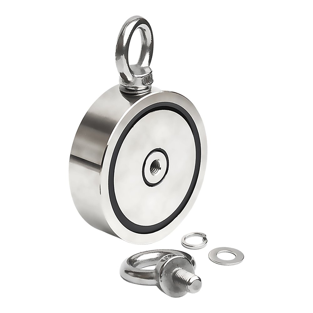 Looking for a two-sided magnet with the power to fish metallic objects from the water or buried in the ground? This 700-kilogramme-capacity neodymium magnet from Randy & Travis Machinery provides two-sided pulling power with 350-kilogram pulling forces on each side.