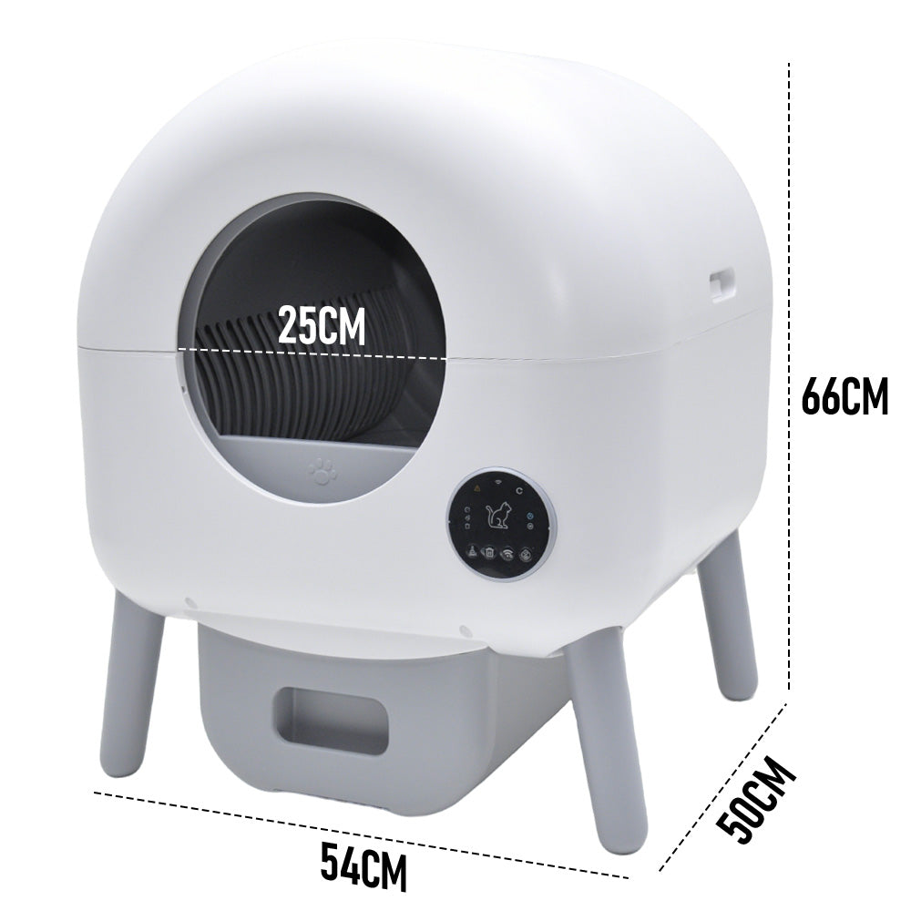 With a sleek exterior, this smart self-cleaning cat litter box offers automatic waste disposal, reducing the need for frequent scooping. Its spacious space can accommodate cats comfortably while maintaining optimal hygiene. With advanced app control, you can track your cat's health and litter box habits wherever you go.