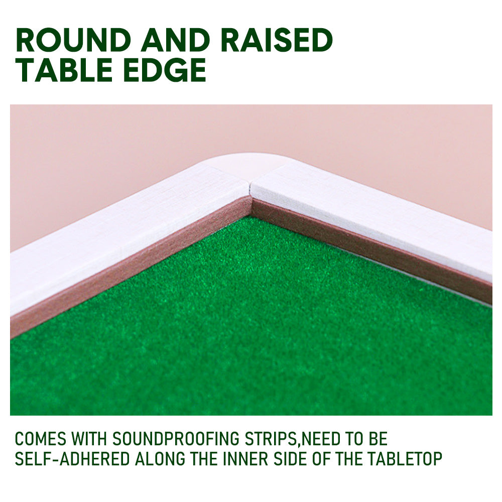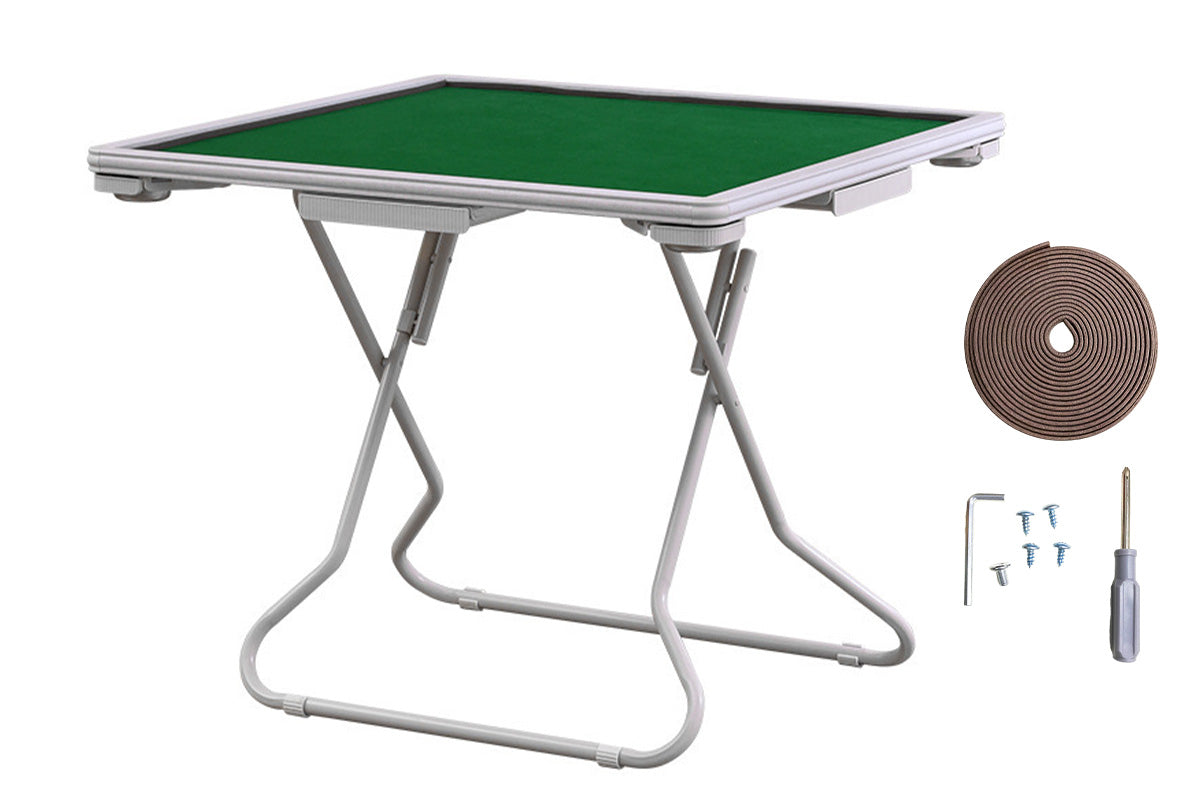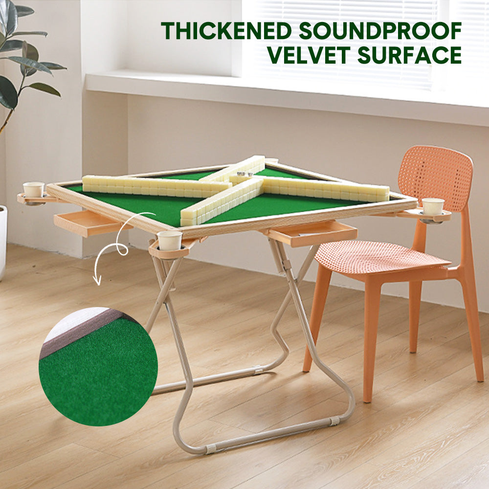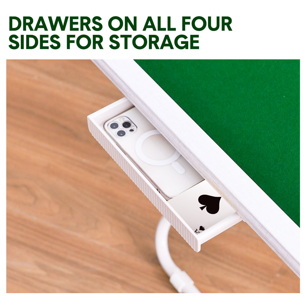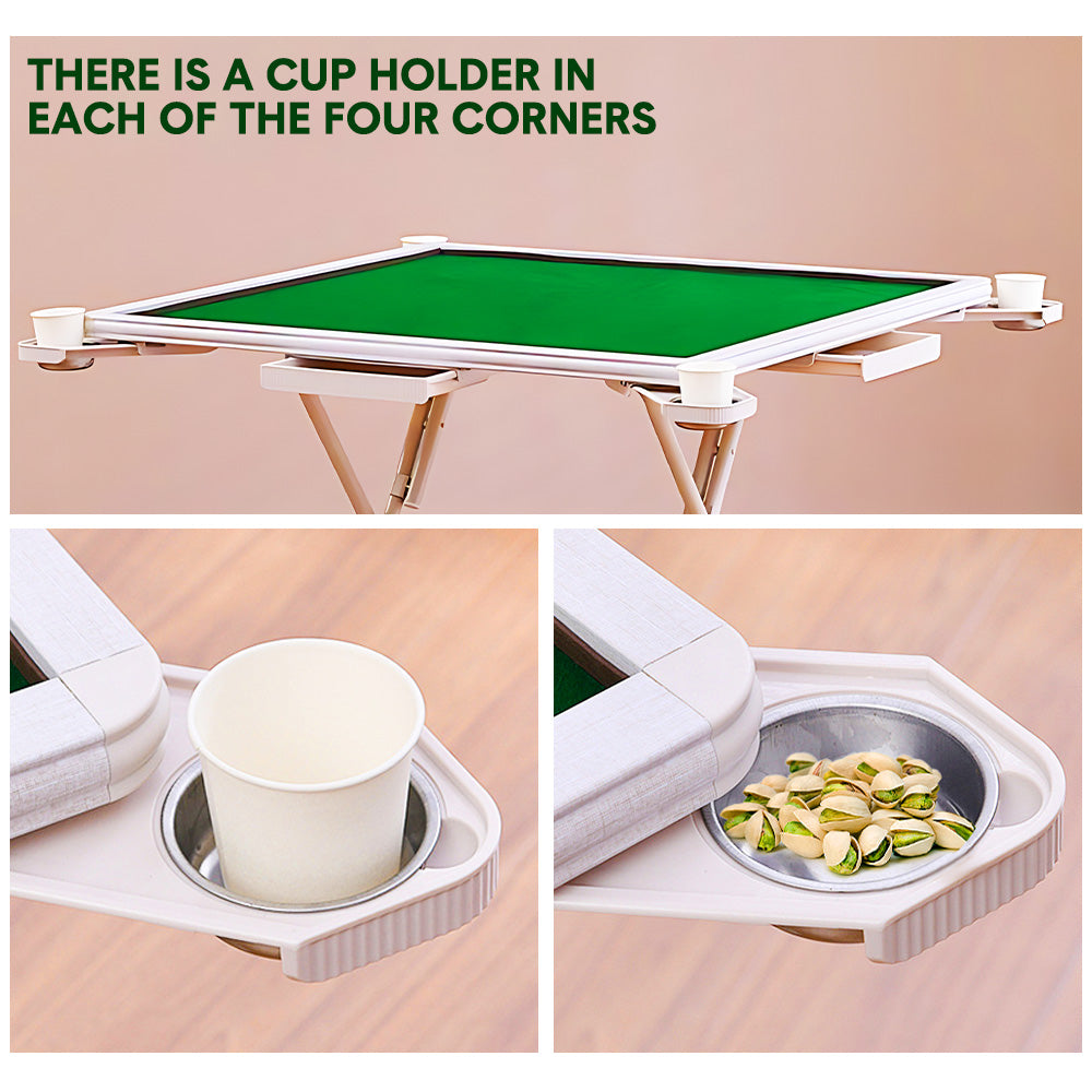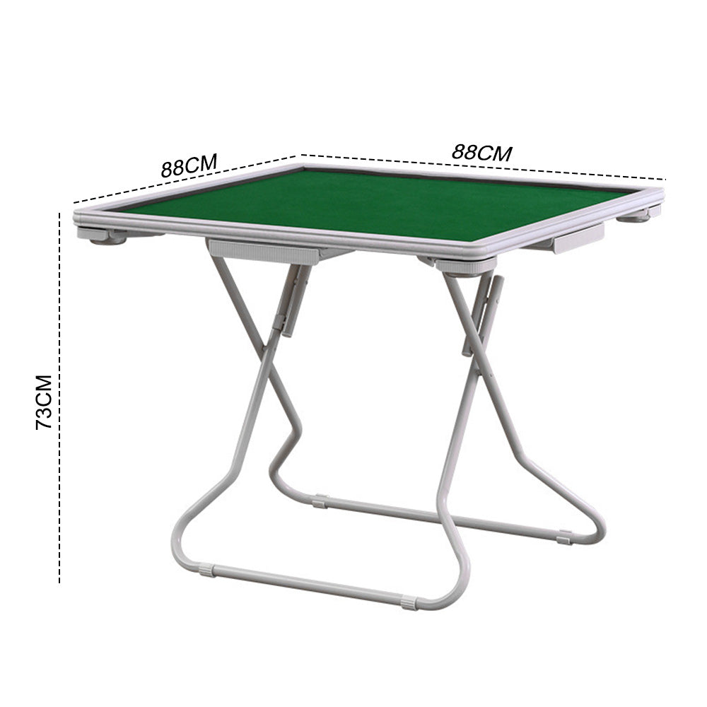 The 88cm Folding Card Game Table accommodates up to 4 players with a felt green surface that prevents cards and Mahjong tiles from slipping. It features cup holders and a card drawer for convenience, while its portable design ensures easy storage and transport. Supporting up to 220 lbs and no assembly required.