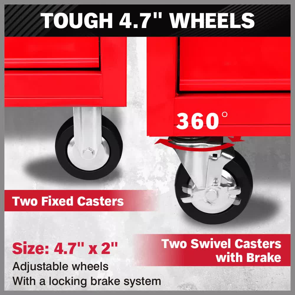 Heavy-Duty Casters: Equipped with 4.7-inch wheels, including 2 fixed casters and 2 swivel casters with brakes, for easy mobility and secure positioning.