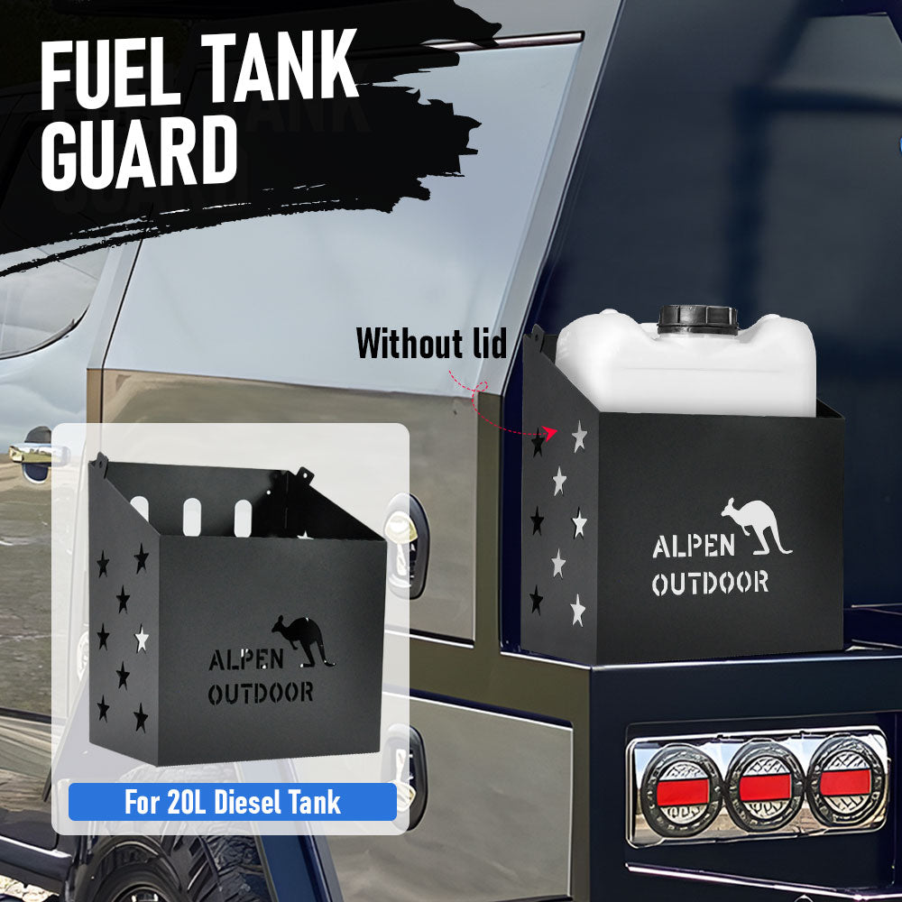 Ensure your fuel tank stable and easily accessible with this 2.5mm thickness aluminium fuel tank cover, perfect for caravans, 4WD, trailer, canopy and campers. Designed to fit 20L diesel tanks, the holder prevents any movement during transportation and top open design makes it practical for frequent access.