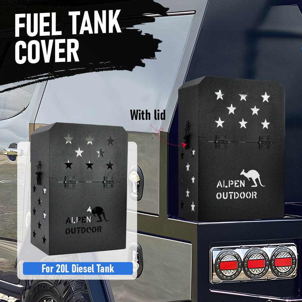 Keep your jerry can protected and stayed in place with this 3.0mm thickness aluminium fuel tank cover, perfect for caravans, 4WD, trailer, canopy and campers. Designed to fit 20L diesel tanks, its lockable latch and top lid ensure your fuel stays safe from theft or bumps during long trips or outdoor adventures.