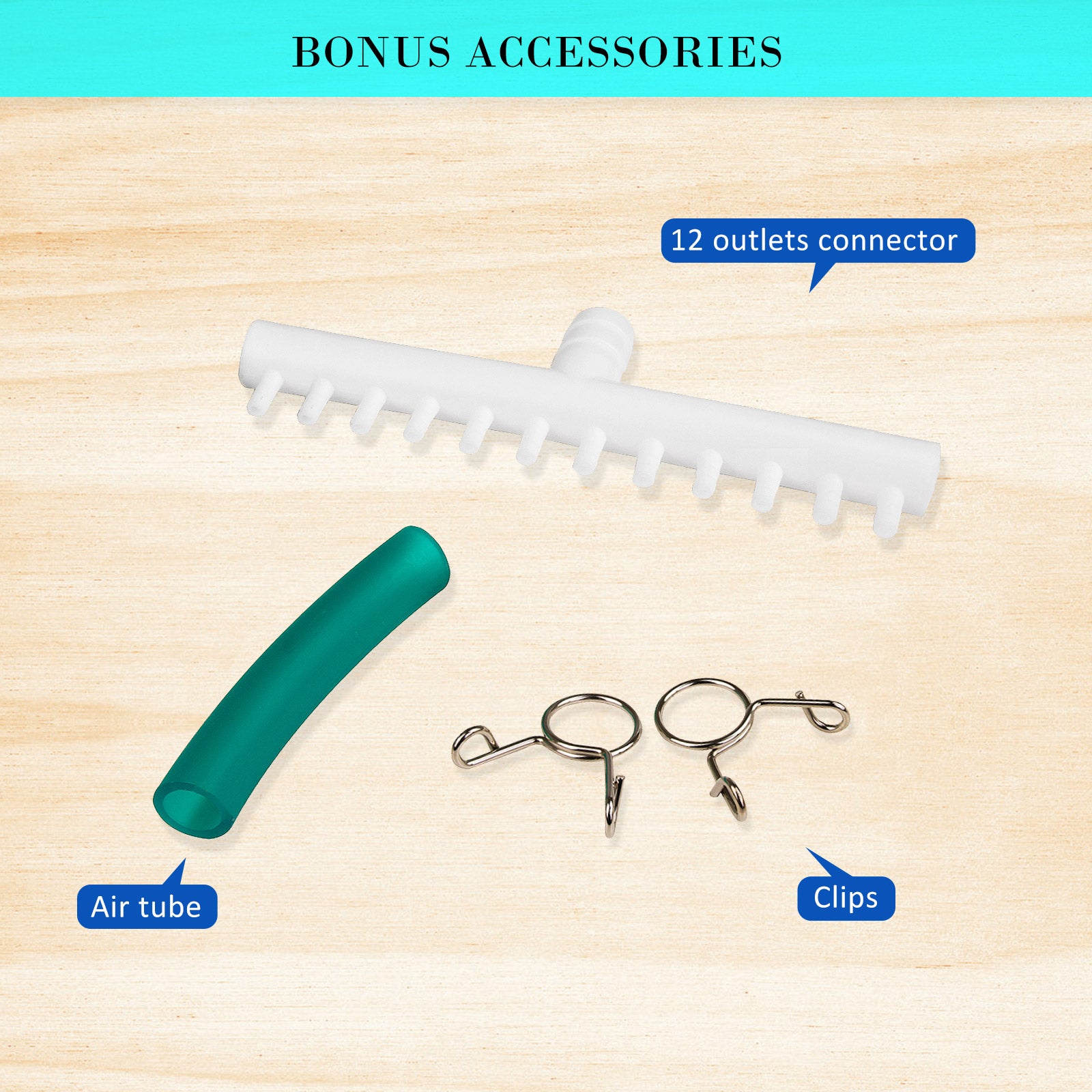 The 12 air outlets allow you to create a more even airflow and maximise the effectiveness in spreading oxygen. The compressor of this air pump is very quiet and the new design added with rubber feet keeps the vibration level to the minimum. The simple, yet efficient design also saves you precious space and also increases the service life.