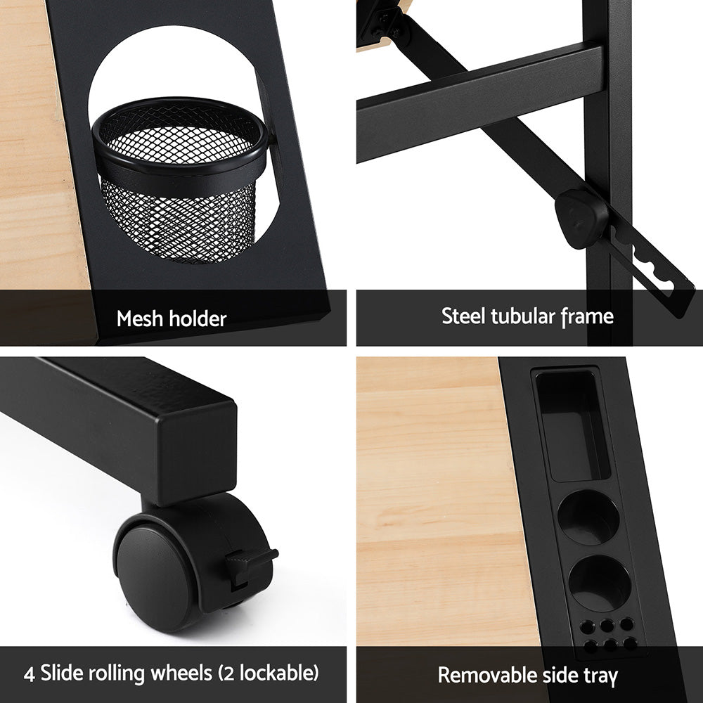 Elevate your workspace with our adjustable drawing desk. Featuring an adjustable desktop angle (0°to 65°) for comfort and different needs, a removable side tray for organized tools, and a multi-functional use that suits drawing, writing, and more. Its classic wooden finish and sleek modern aesthetic enhance any decor. Experience the joy of effortless assembly and a generous work surface, all within a sturdy, lightweight, and versatile design that caters to your needs.