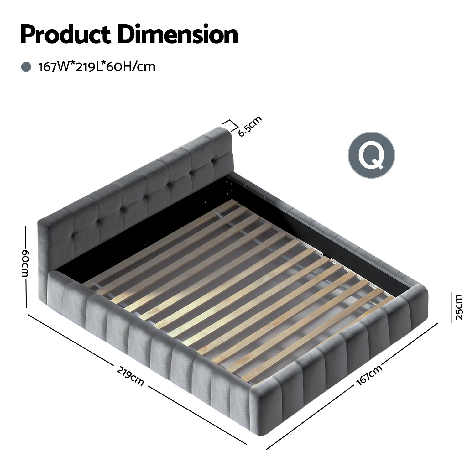 The Artiss Queen Bed Frame combines elegance and function with its cloud-inspired plush velvet headboard and modern platform base. Featuring a reinforced plywood-pine frame with 14 support slats and durable metal fixings, it holds 300kg and fits queen mattresses (153x203cm). The smooth-edge velvet upholstery adds luxury while ensuring safety. Quick assembly completes this bedroom upgrade.