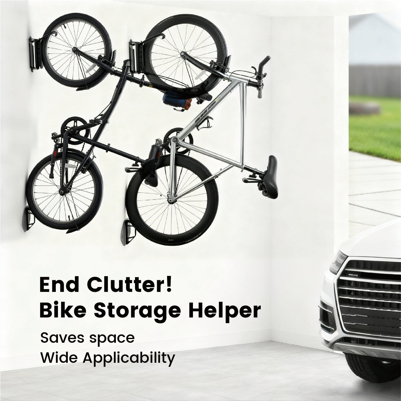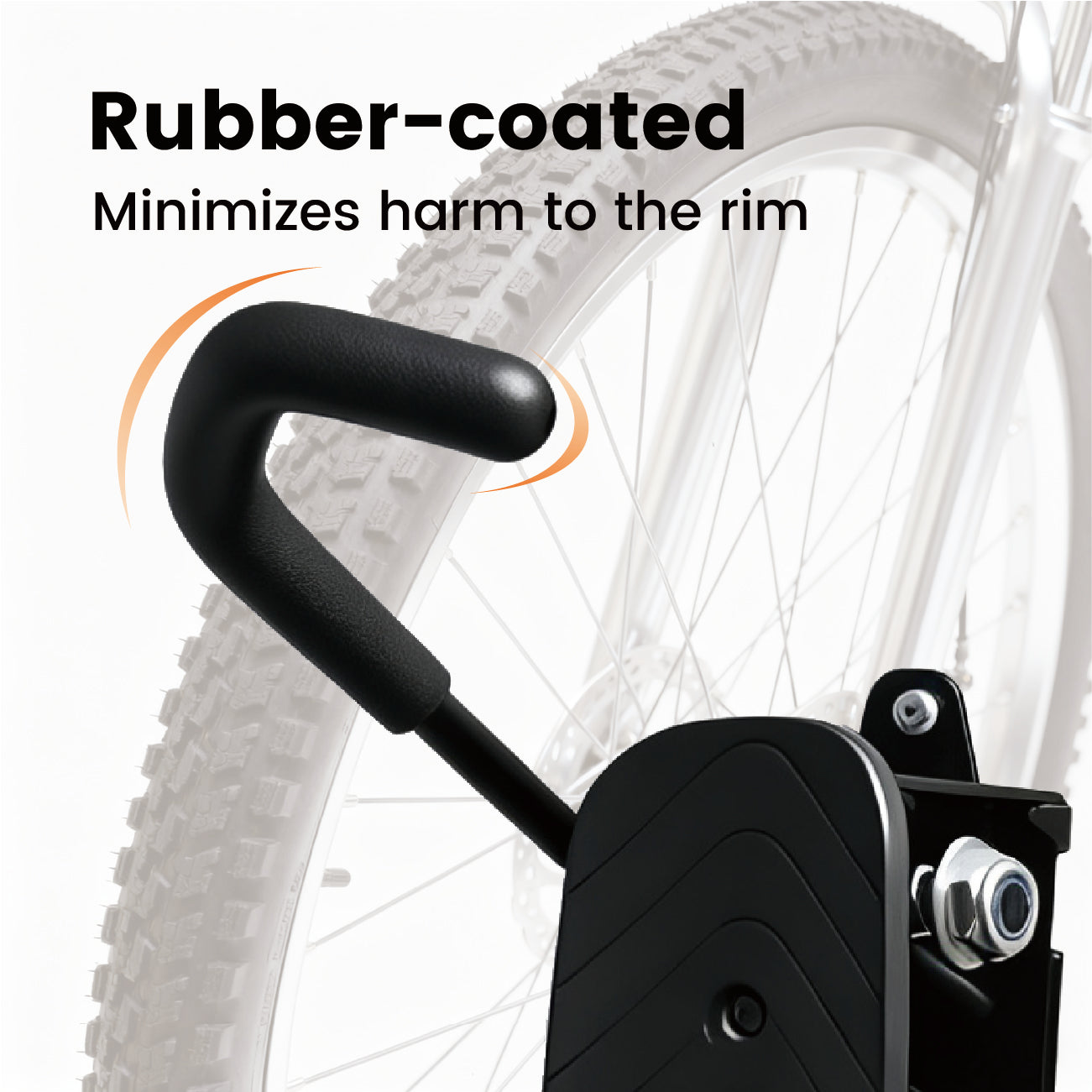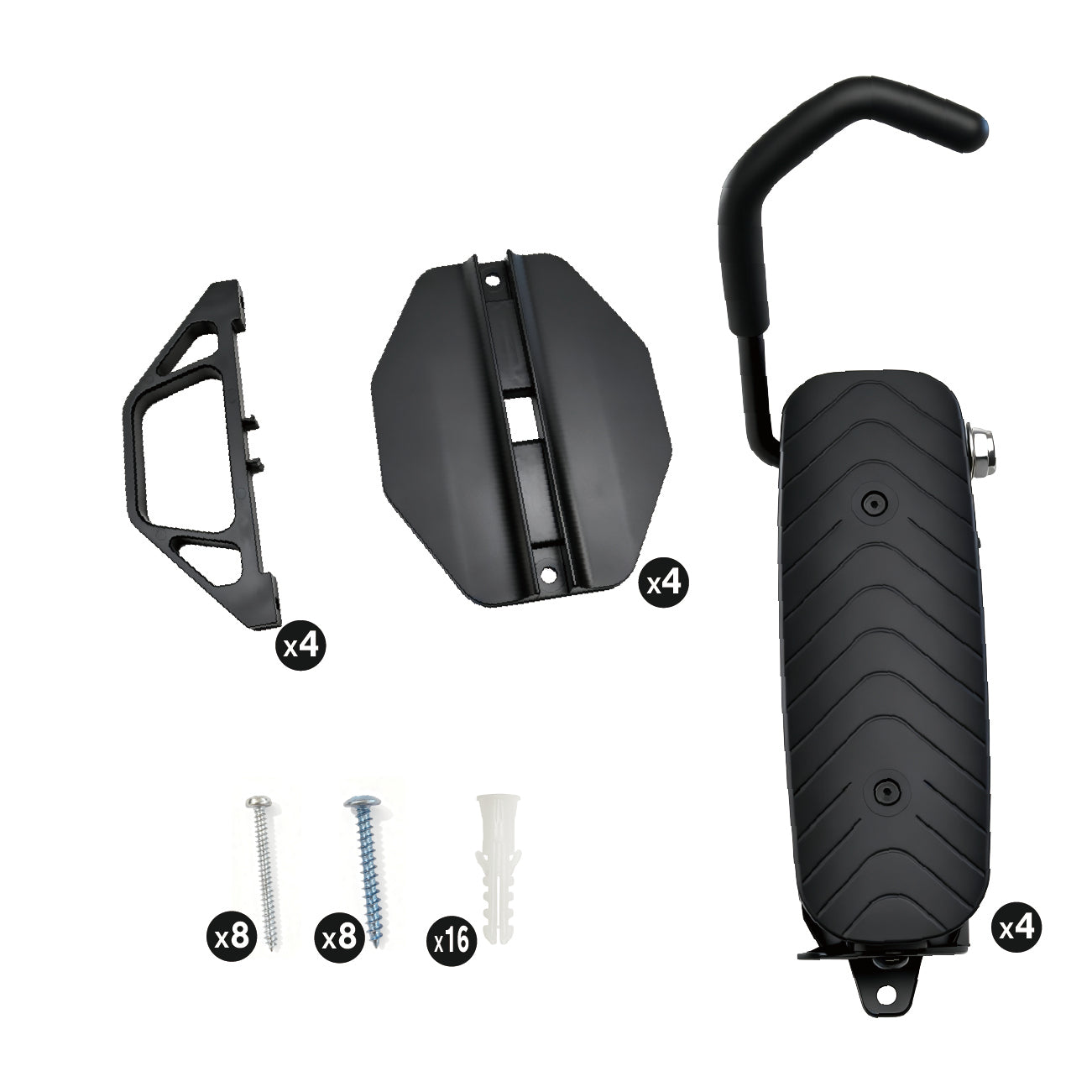 Keep your bike neatly stored and protected while saving valuable floor space. These 4 sets wall-mounted rack holds your bicycle upright with a secure front hook and rear wheel pad. With a swivel design, it allows you to adjust the bike's angle to fit tight spaces, making it a smart solution for garages, apartments, or small storage rooms.