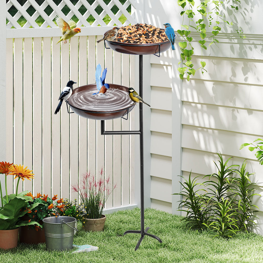 Transform your garden into a lively haven for birds with this 2-in-1 bird bath and feeder. Our freestanding bird feeding station includes two 12-inch bowls, which attracts a variety of wild birds, giving them a place to bathe, drink, and feed. More than that, it adds charm to your garden while bringing the joy of birdwatching to your backyard.