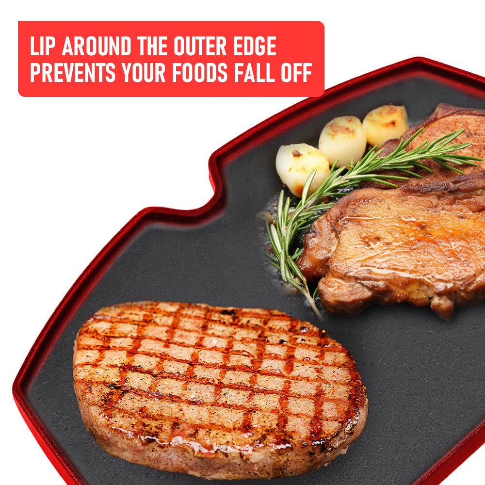 • Non-Stick: With proper high temperature oil, the cast iron BBQ pan becomes a naturally nonstick finish. The flat surface allows easily cook.