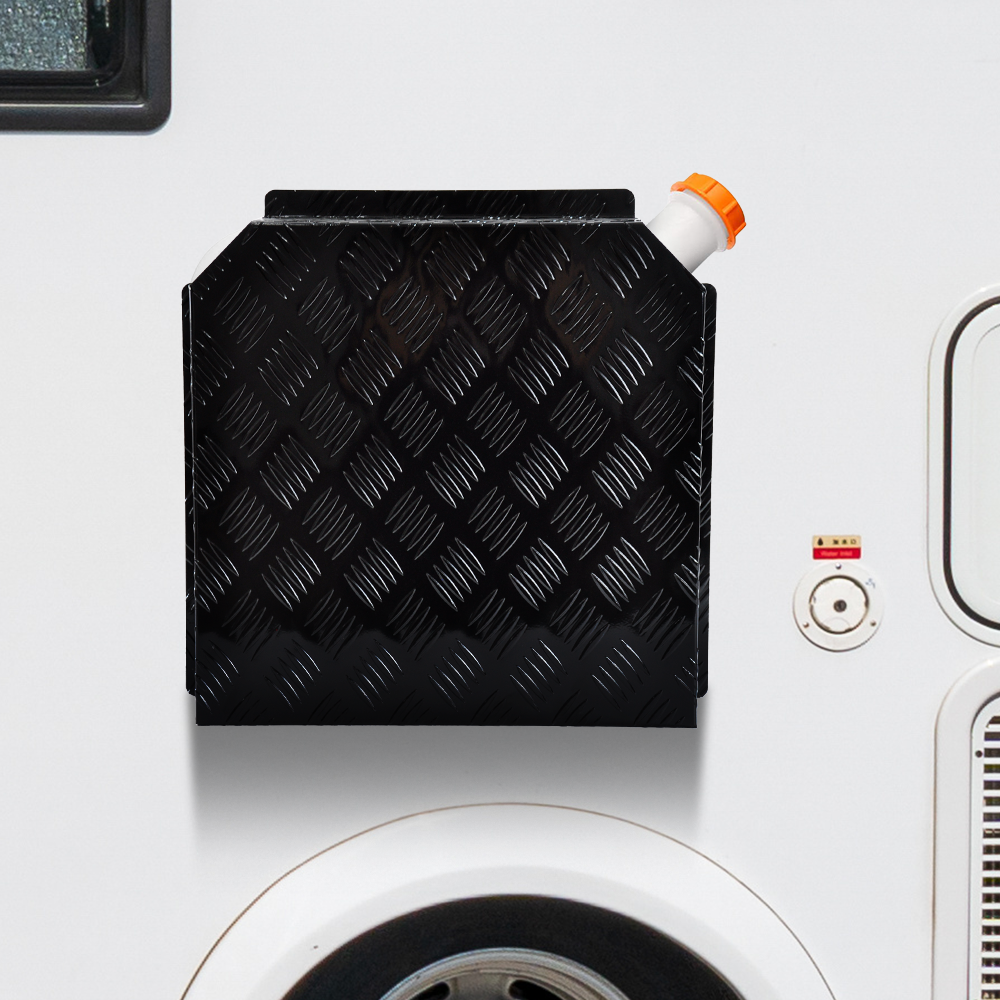 Introducing our heavy duty Aluminium Diesel Fuel Tank Cover, durable and corrosion resistance. Easy to install with 20mm mounting tabs, it fits for both left and right mounting on caravans, enhancing both security and aesthetic appeal for your caravan. (Plastic fuel tank not included.)