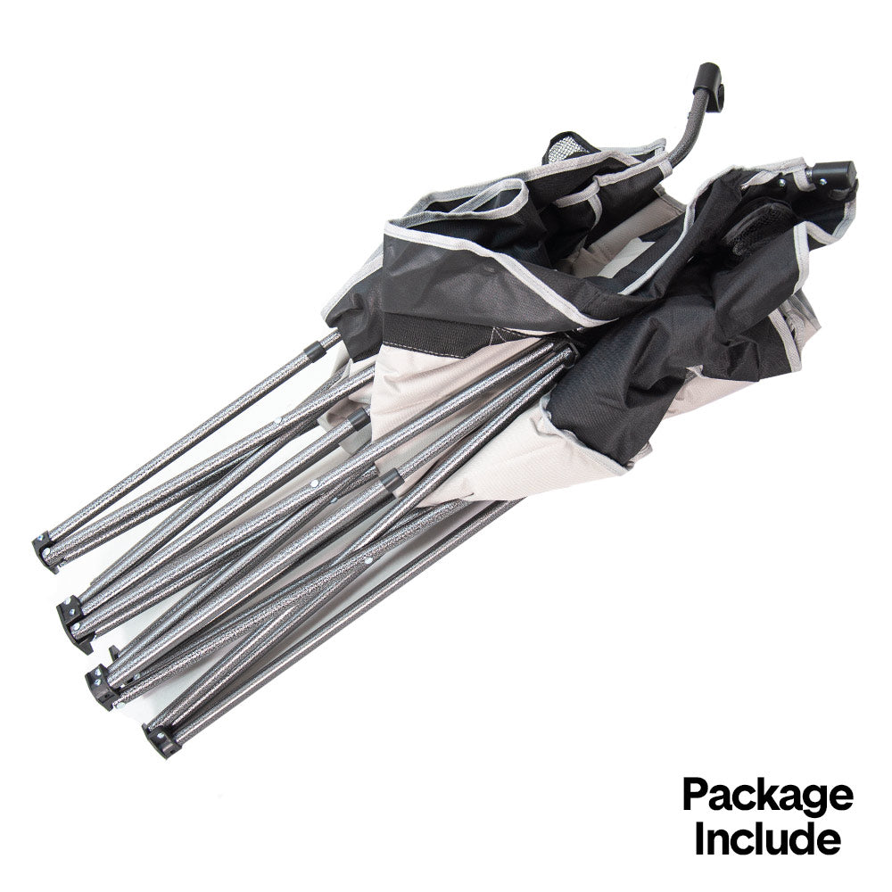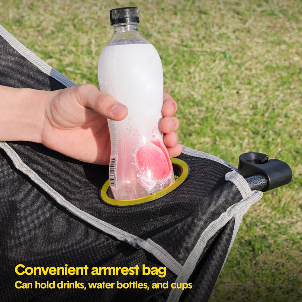 Crafted with a premium iron frame, the chair offers excellent stability and strength, while its coated surface protects against rust and harsh weather. Thick 600D Oxford fabric ensures wear resistance, breathability, and lasting comfort without sagging. Built-in armrests enhance relaxation, while dual cup holders keep drinks within reach.